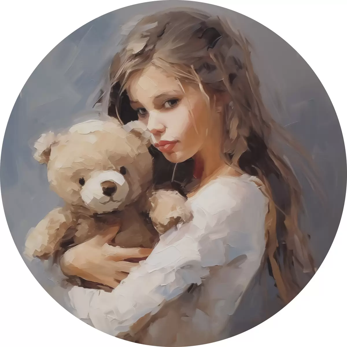 Runde Gemälde Mädchen mit einem Spielzeugbären, Gemäldeimitation r46746