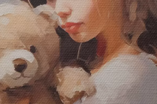 Bild Mädchen mit einem Spielzeugbären, Gemäldeimitation Nr r46746
