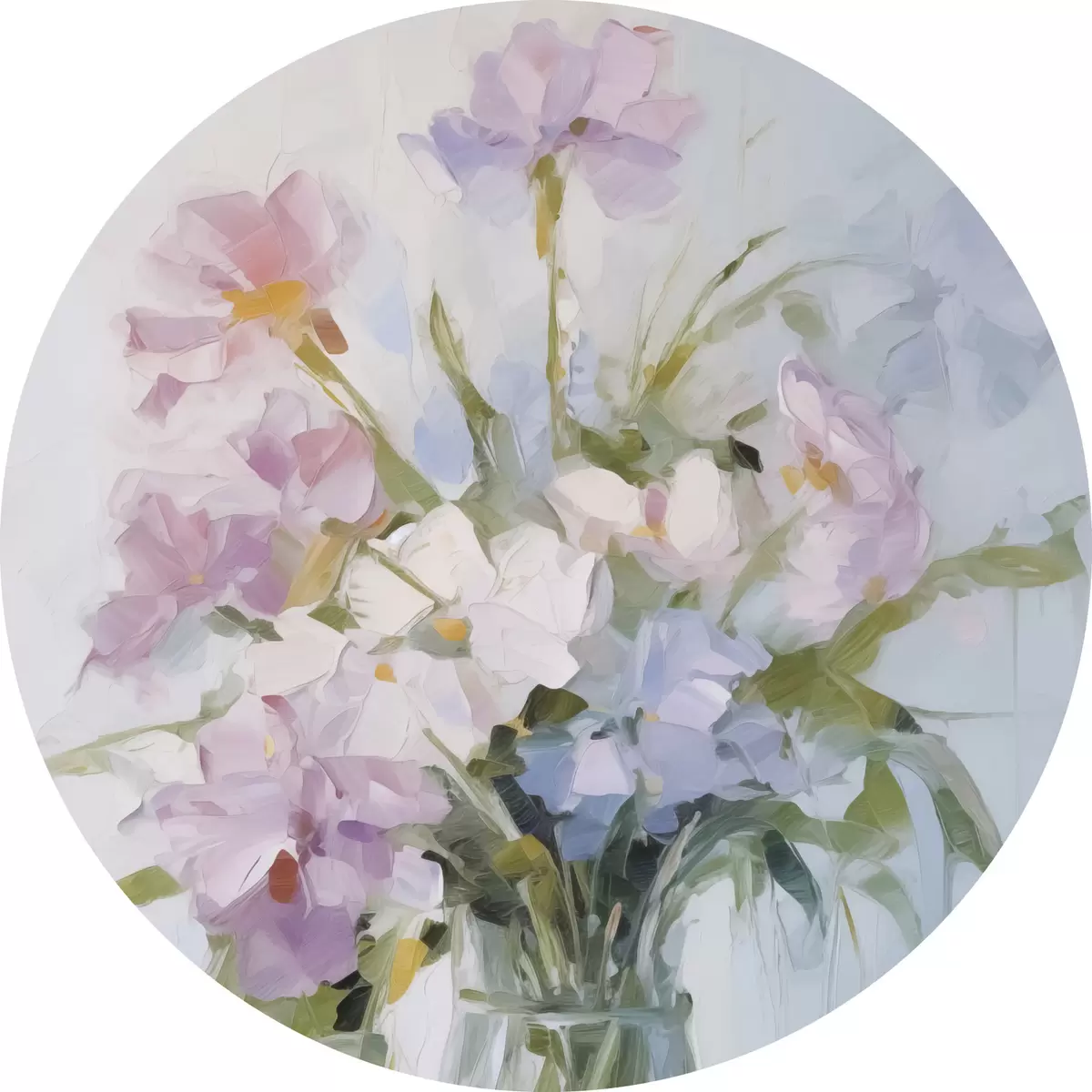 Runde Gemälde Blumenstrauß in einer Vase, Nachahmung eines Gemäldes r46751
