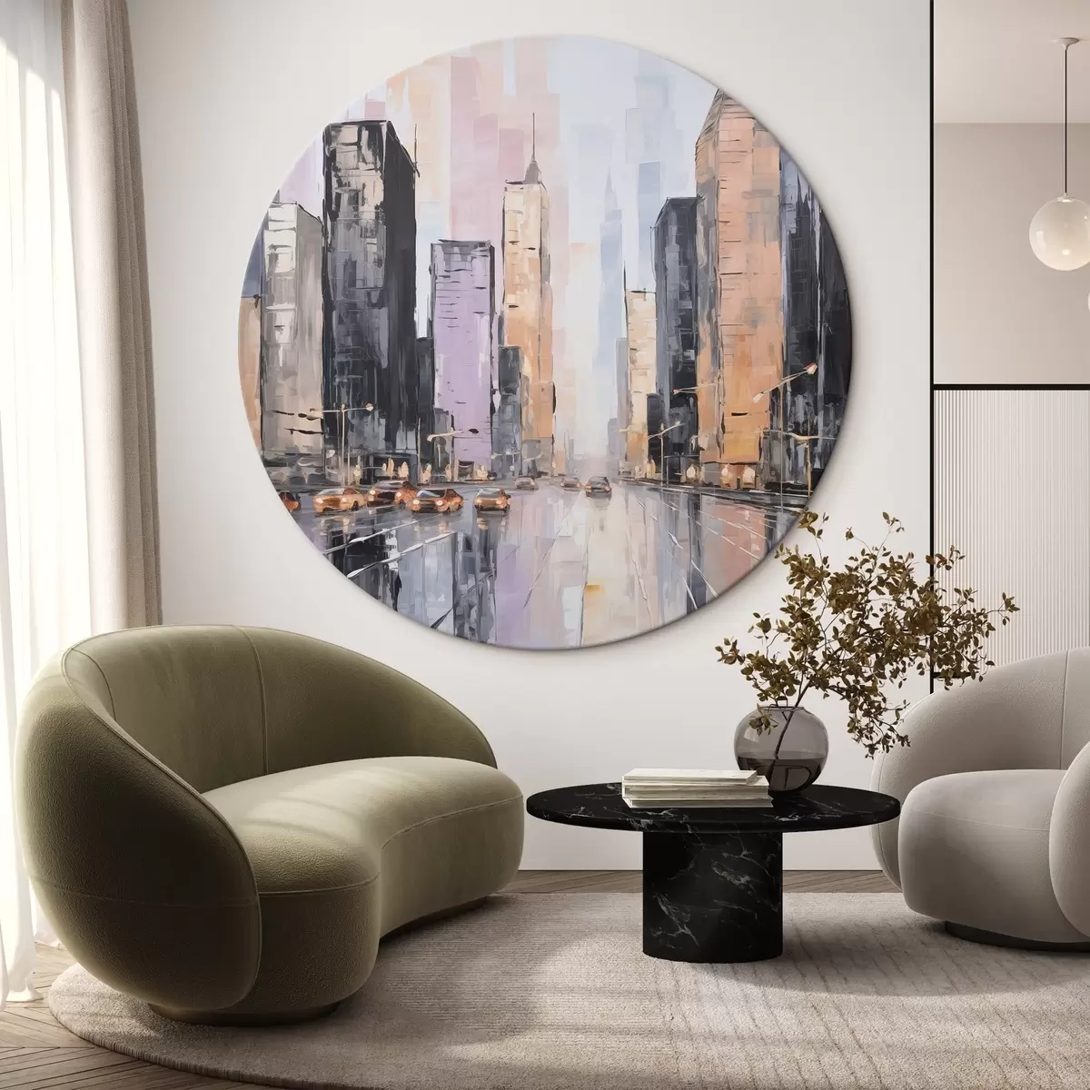 Runde Gemälde Abstrakte Stadtlandschaft im Stil der Malerei r46753