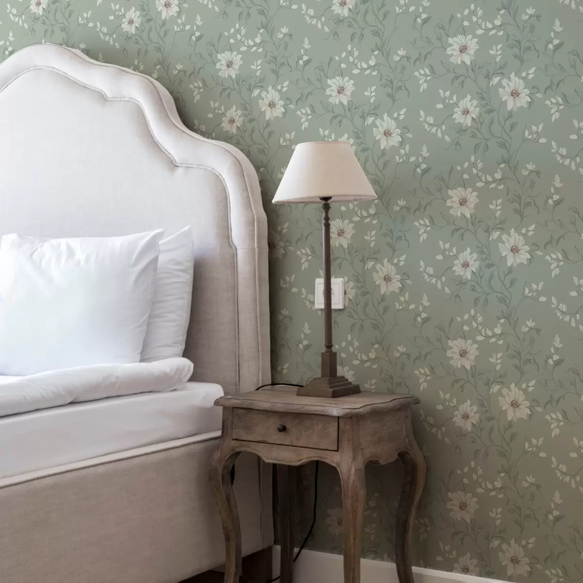 Tapete Weiße Blüten mit zappelnden Blättern Nr. a00001