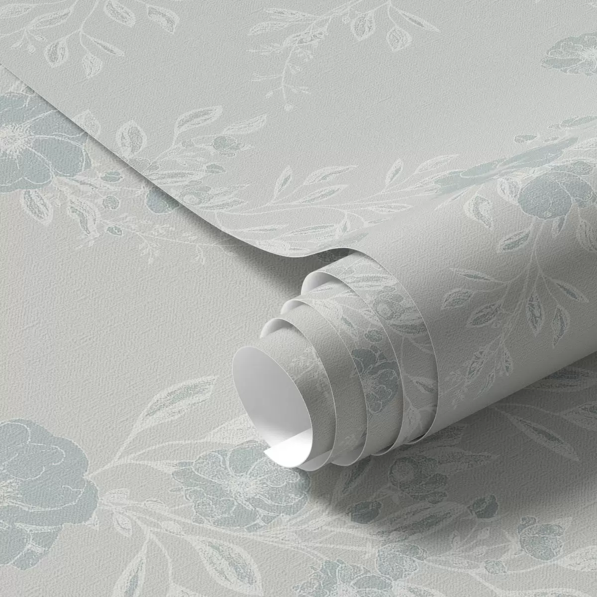Tapete Blumen mit hellen Blättern auf blauem Hintergrund Nr. a00006v2