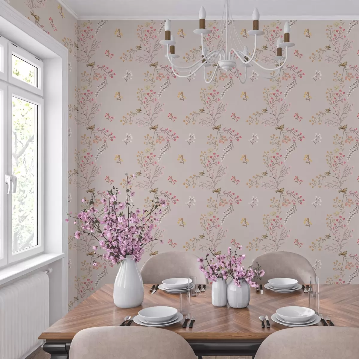 Tapete Zarte Blumen und Kolibris auf Ästen Nr. a00036