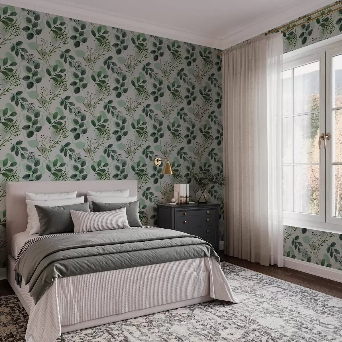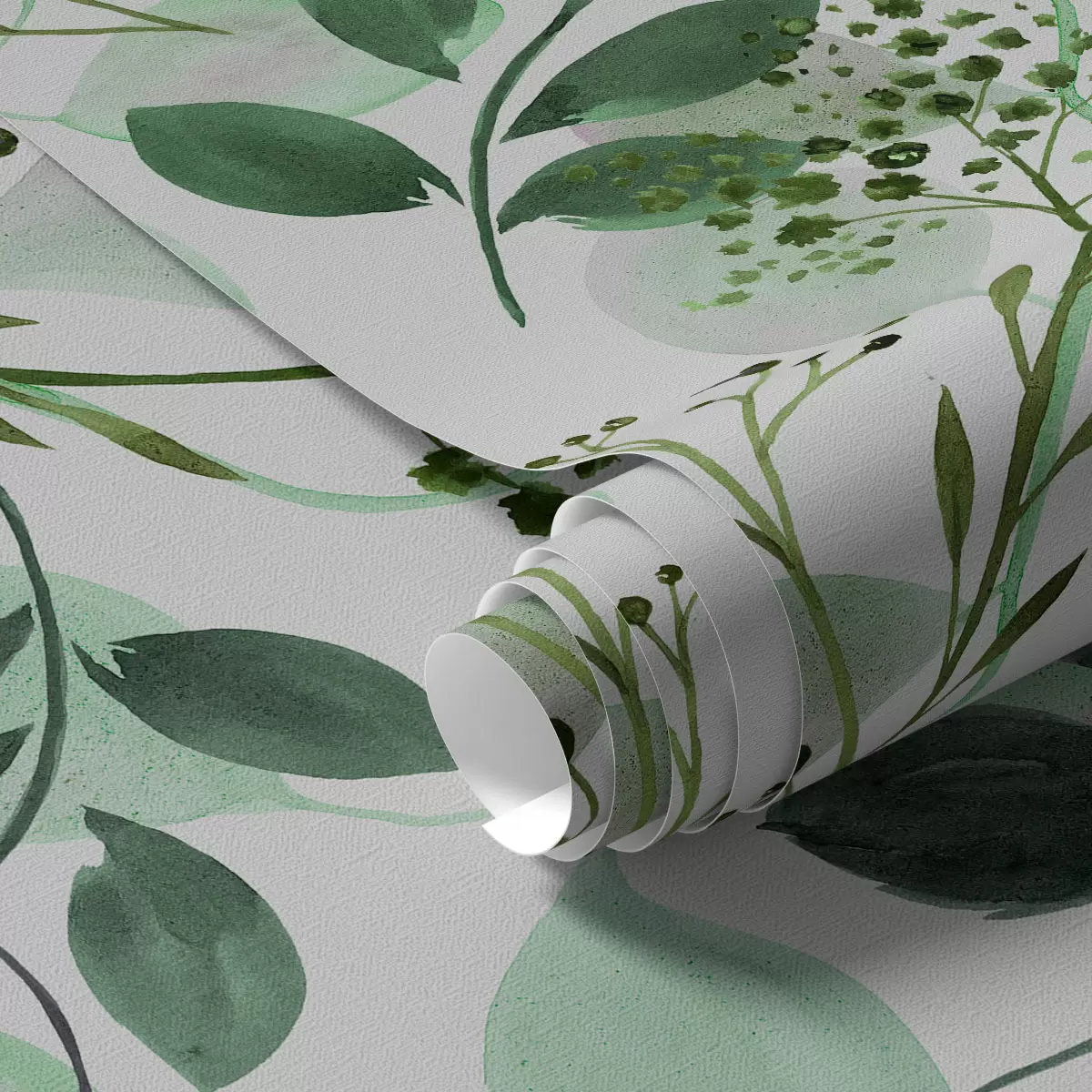 Tapete Herbstblätter im Aquarellstil in Grüntönen Nr. a00048v1