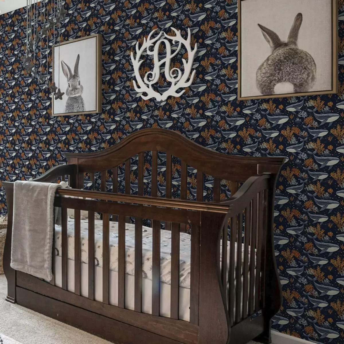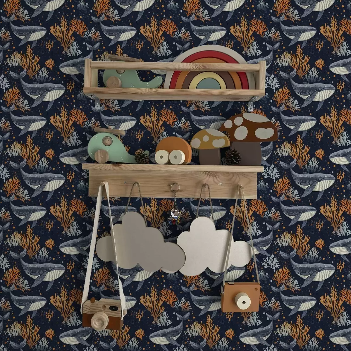 Tapete Meerwale und Korallen auf dunklem Hintergrund Nr. a00116
