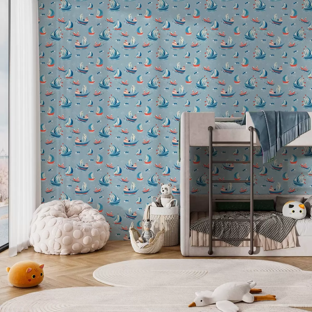 Tapete Schiffe auf blauem Hintergrund Nr. a00126