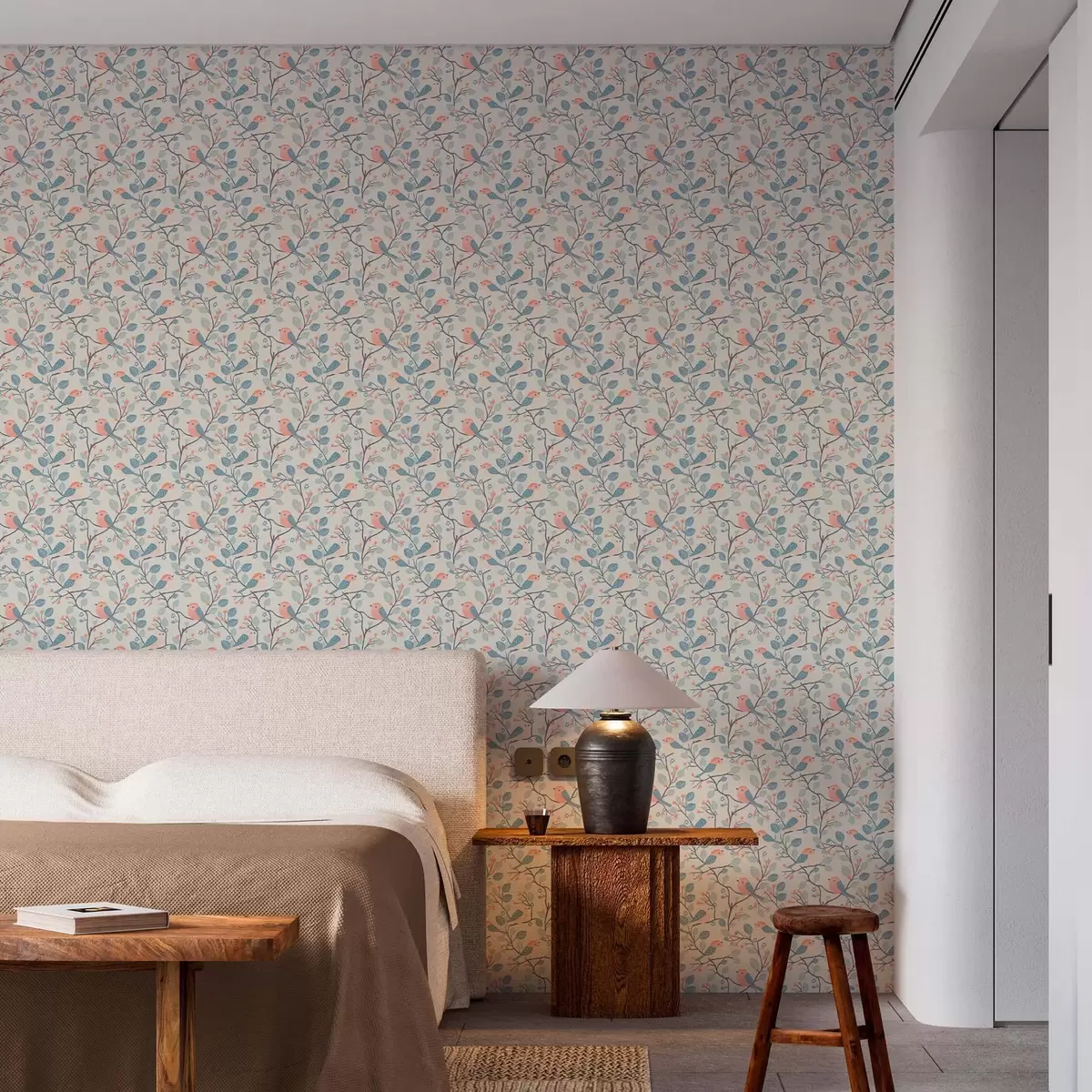 Tapete Pastell Vögel und Zweige auf einem hellen Hintergrund Nr. a00128