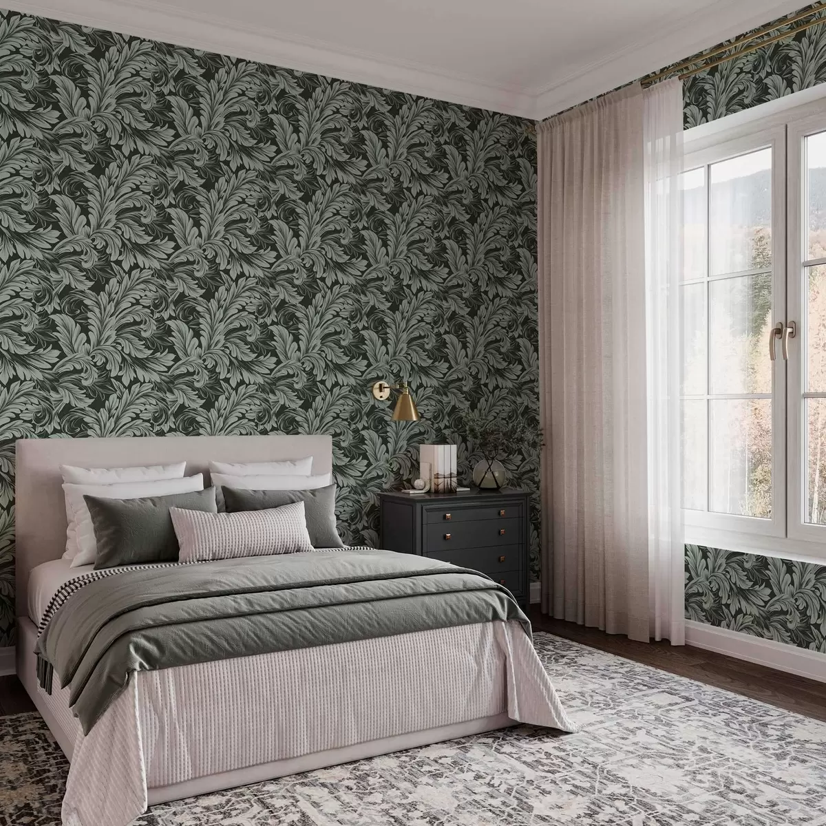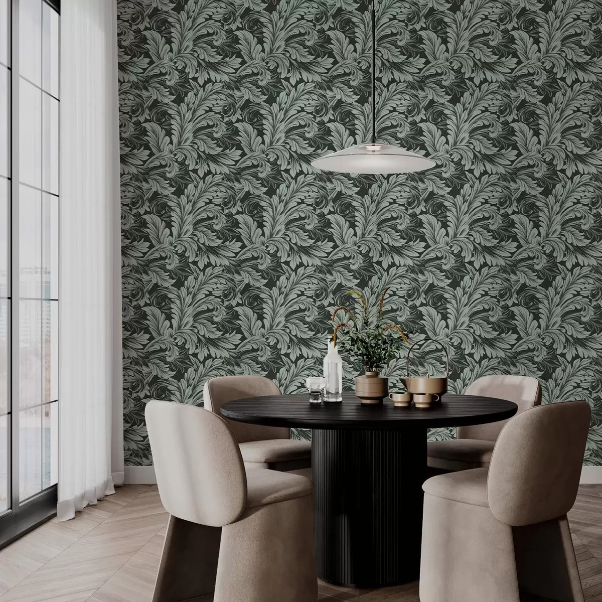 Tapete Dunkelgrüner Hintergrund mit mintfarbenen Locken Nr. a00135v4