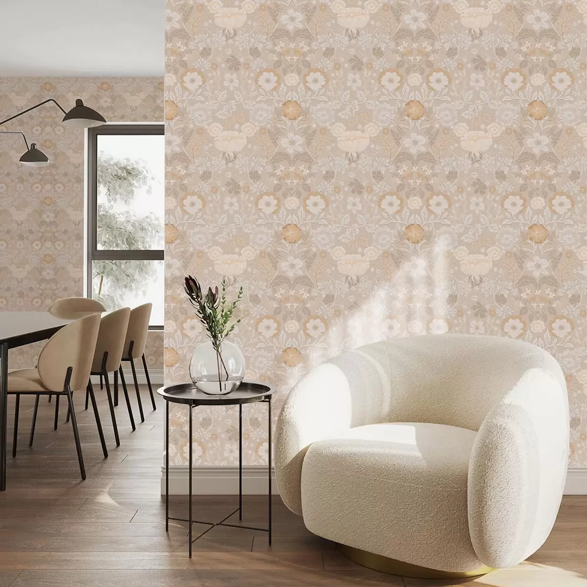 Tapete Beigefarbener Blumendruck in einer Pastellfarbe Nr. a00145
