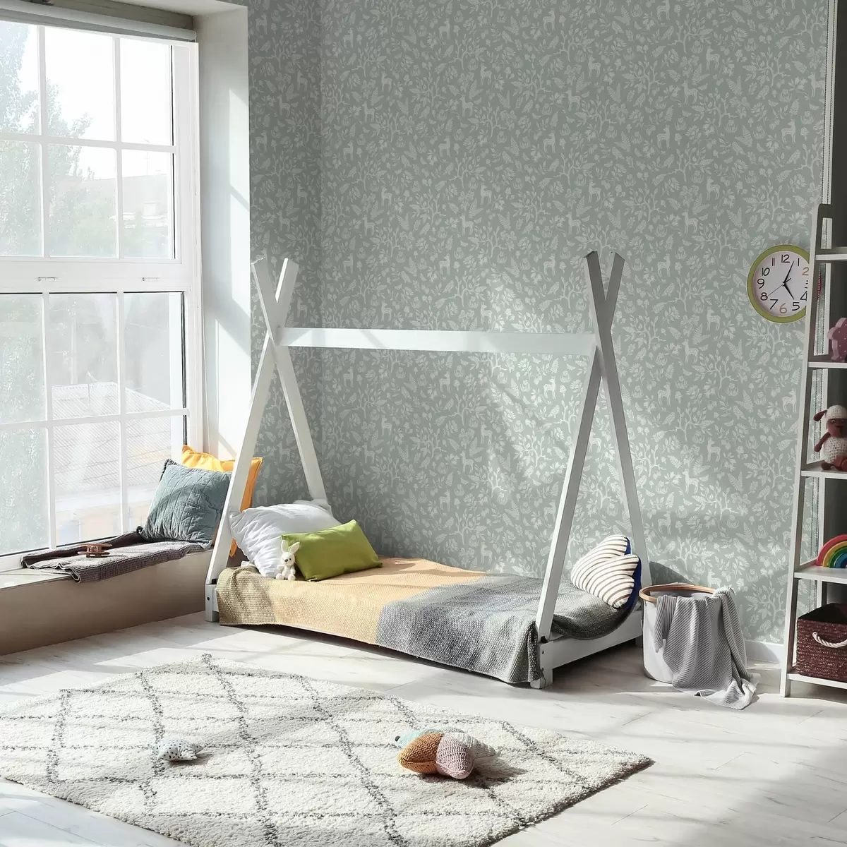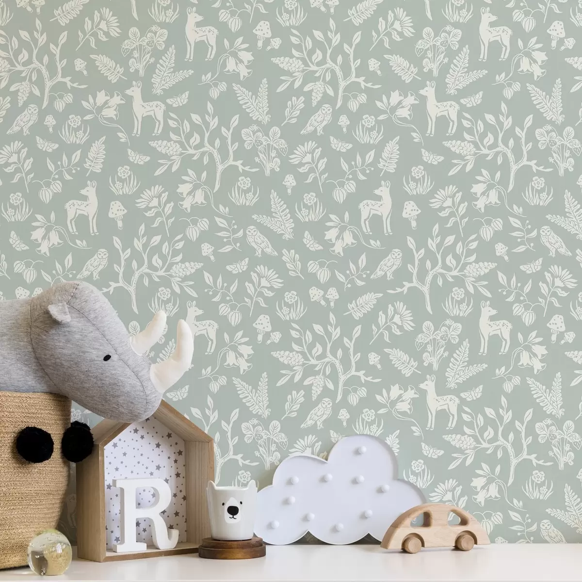 Tapete Skandinavische Tiere und Pflanzen auf einem mintfarbenen Hintergrund Nr. a00149