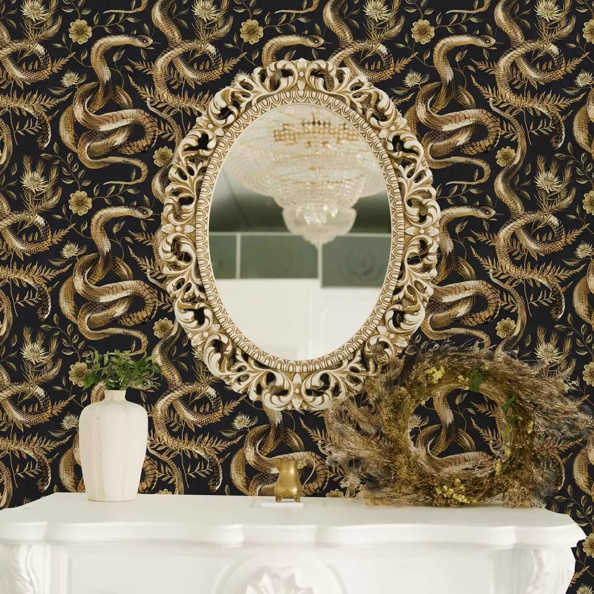 Tapete Schlangen und Blumen auf einem dunklen Hintergrund Nr. a00158