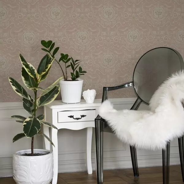 Tapete Rosa klassisches Muster mit Medaillons und Blumen Nr. a00185