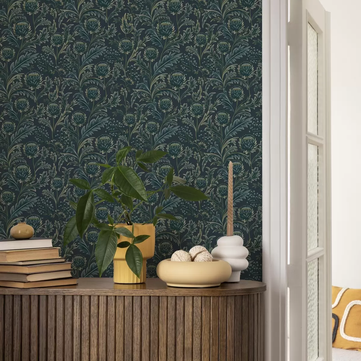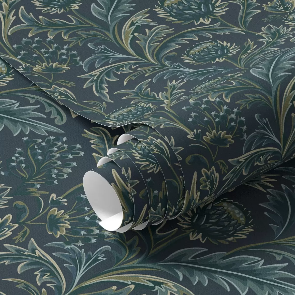 Tapete Dunkelgrünes florales Muster mit Artischocken Nr. a00186