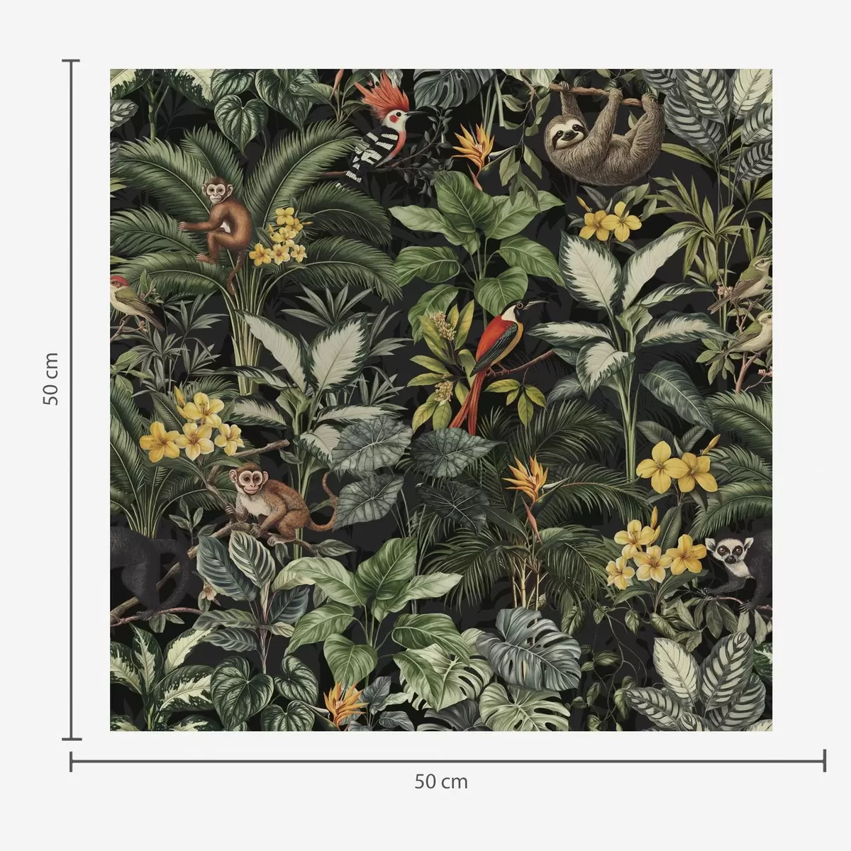 Tapete Tropischer Dschungel mit Affen, Vögeln und dichtem Blattwerk Nr. a00191