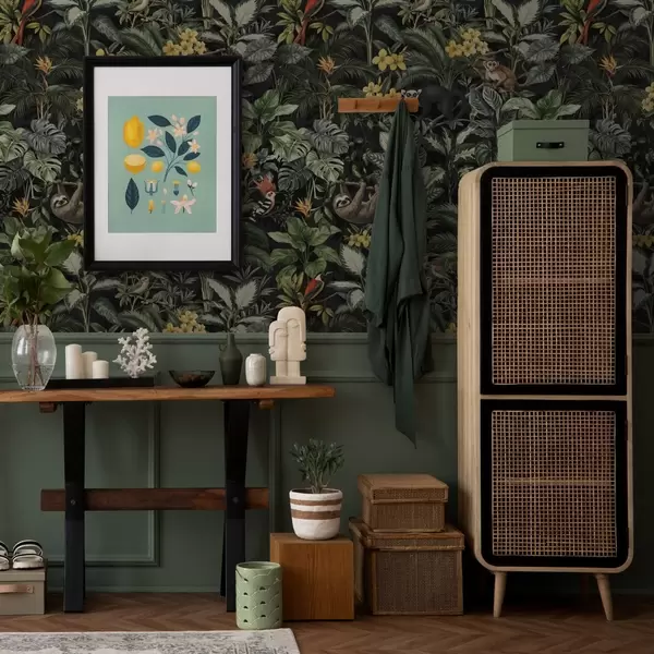 Tapete Tropischer Dschungel mit Affen, Vögeln und dichtem Blattwerk Nr. a00191