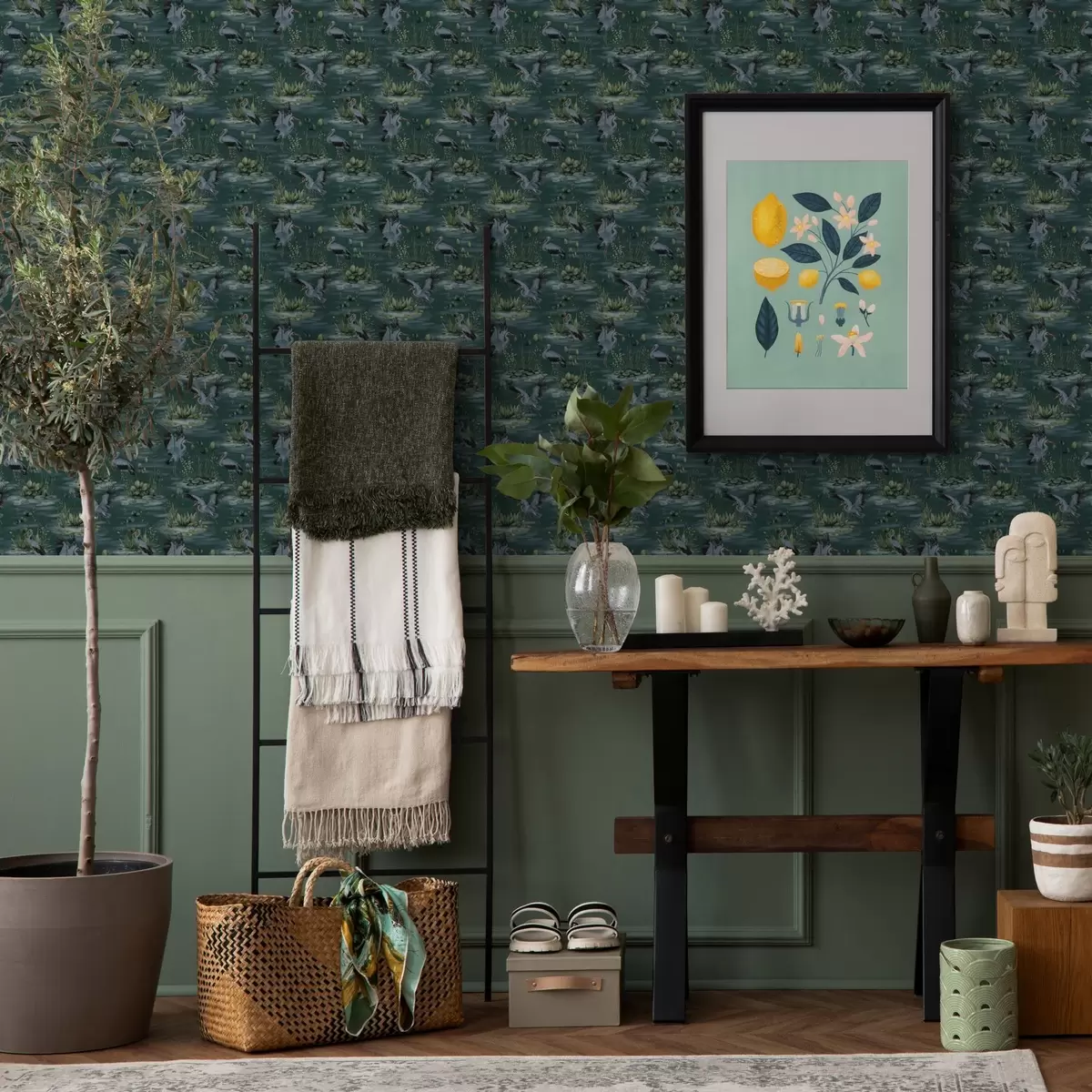 Tapete Szenen mit Reihern auf dem Hintergrund von Teichen und Seerosen Nr. a00202