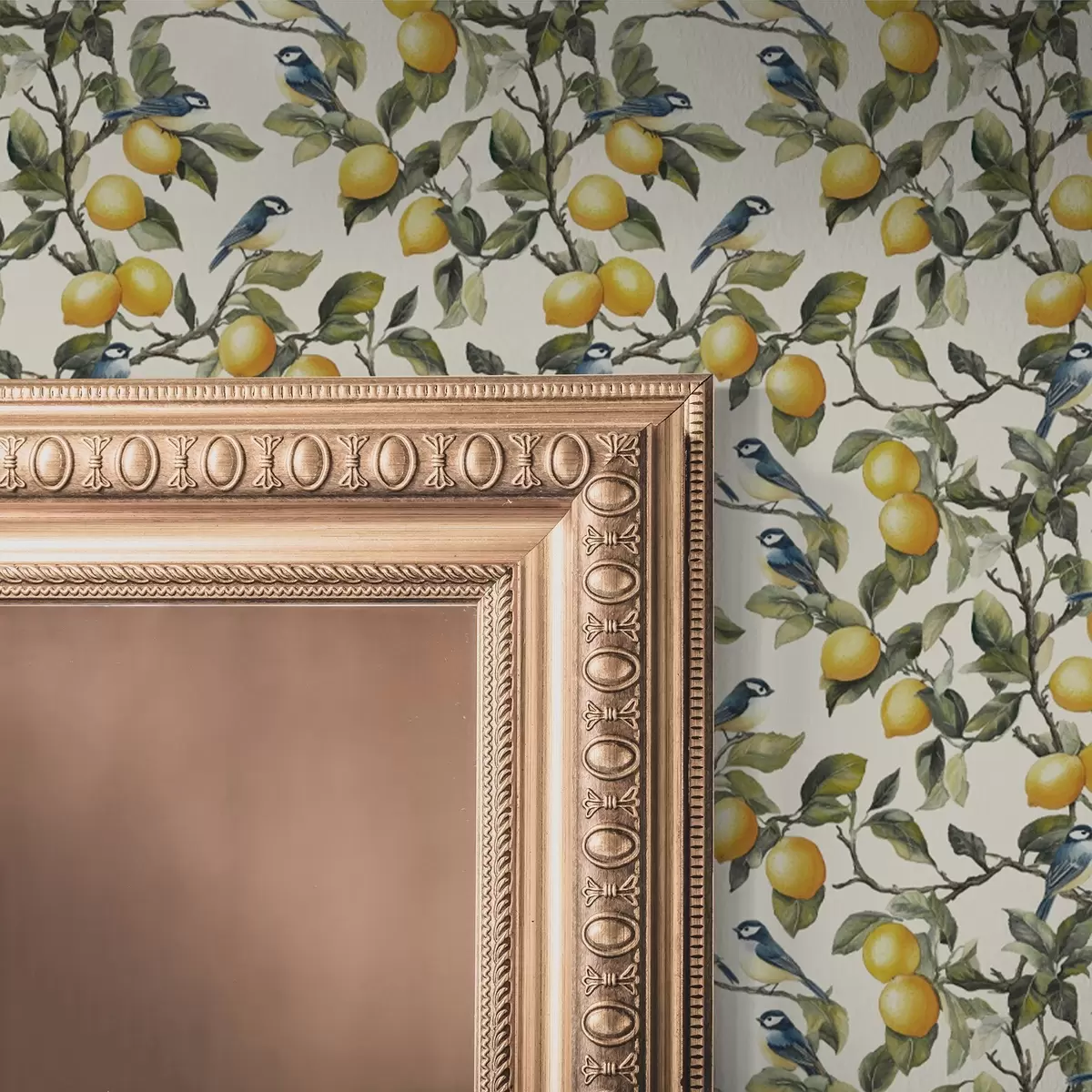Tapete Vögel und Zitronen auf den Zweigen, botanische Aquarellzeichnung Nr. a00207