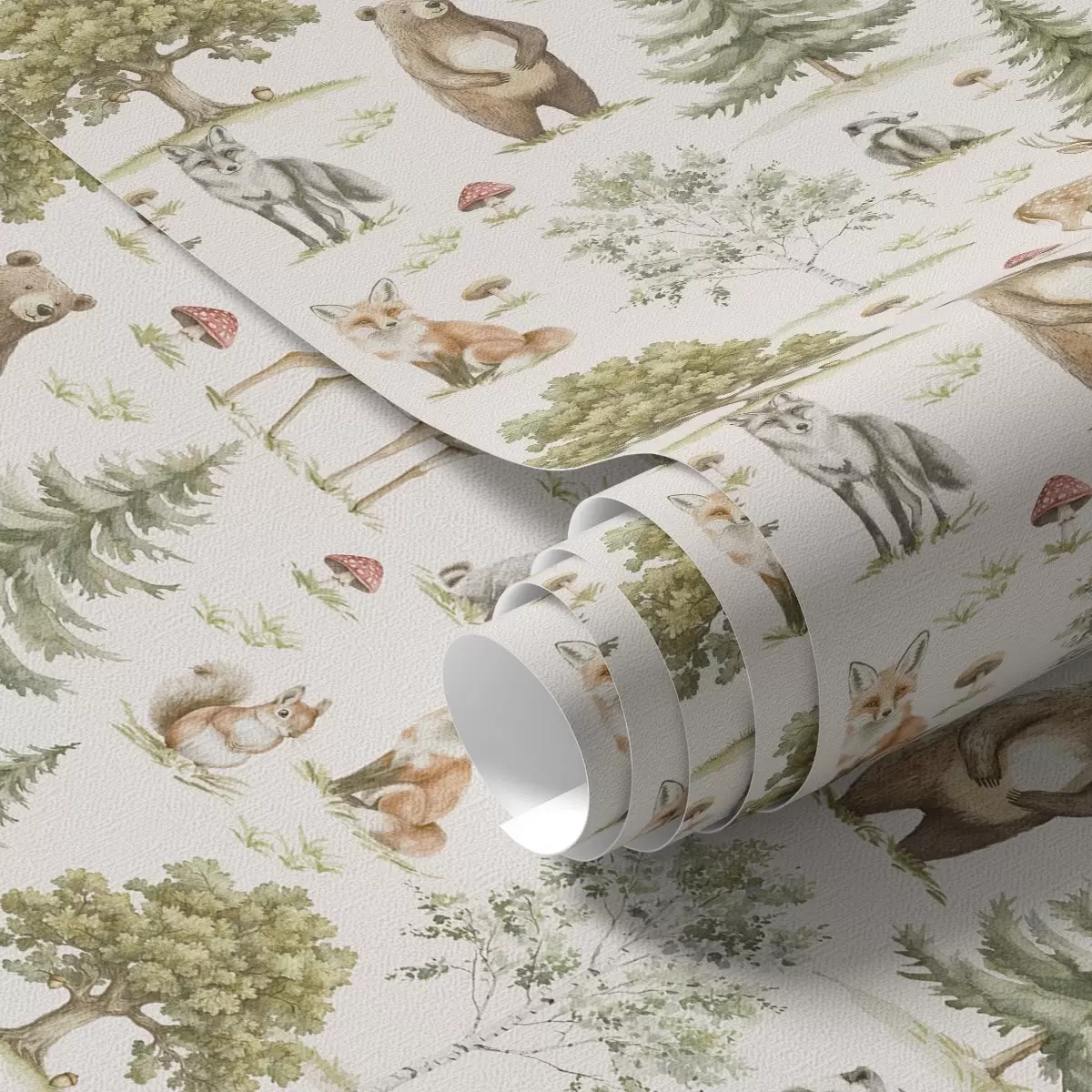 Tapete Waldtiere im weichen Aquarellstil, Bäume und Pilze Nr. a00212