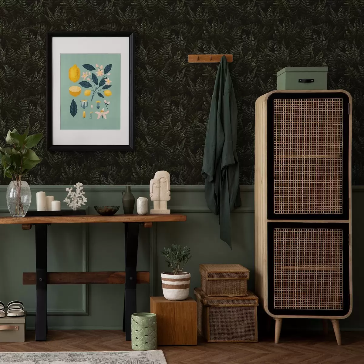 Tapete Dunkler Farn, Waldornament, Nachtfarben Nr. a00214