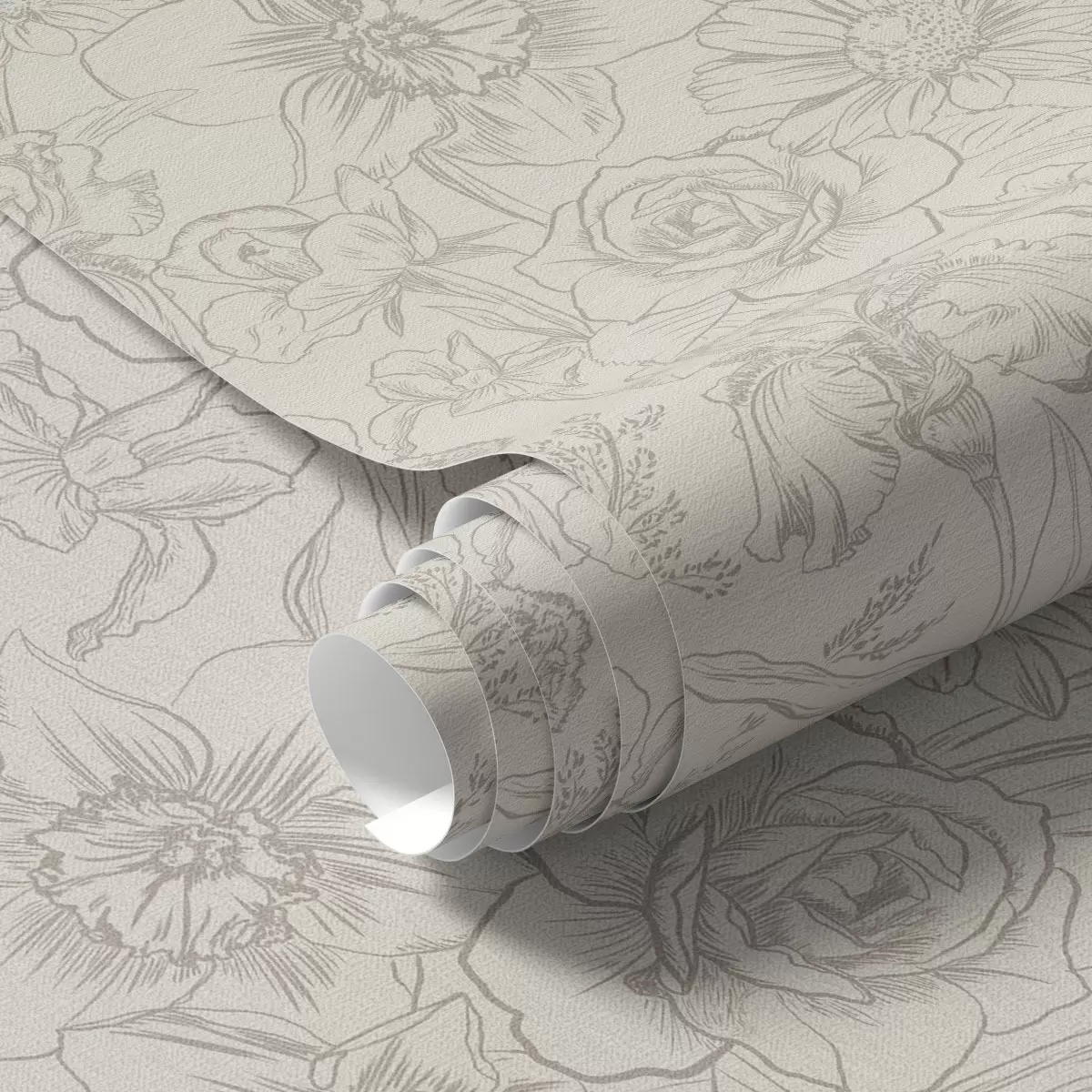 Tapete Konturenblumen auf cremefarbenem Hintergrund, zartes Blumenmuster Nr. a00218