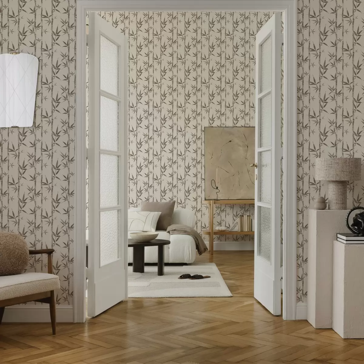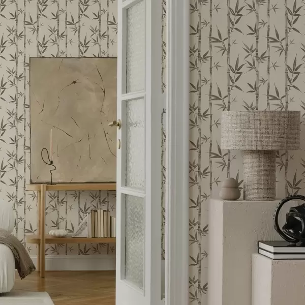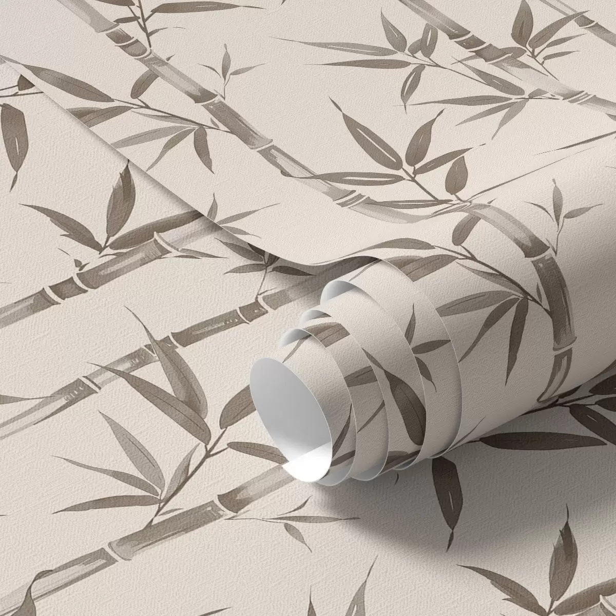 Tapete Beigefarbenes Bambusmuster mit Blättern im japanischen Stil Nr. a00236