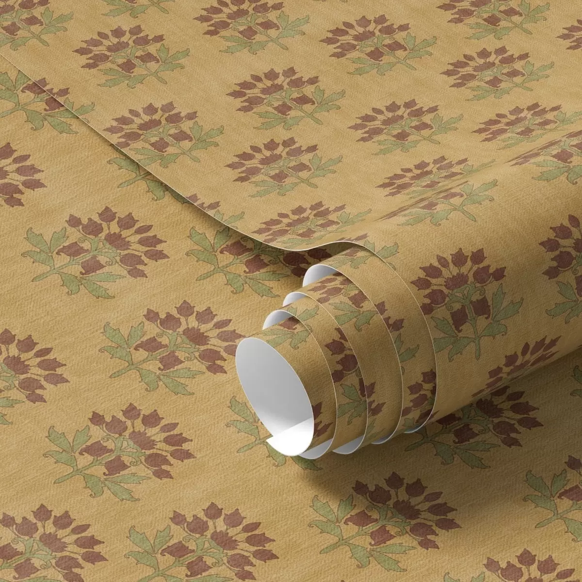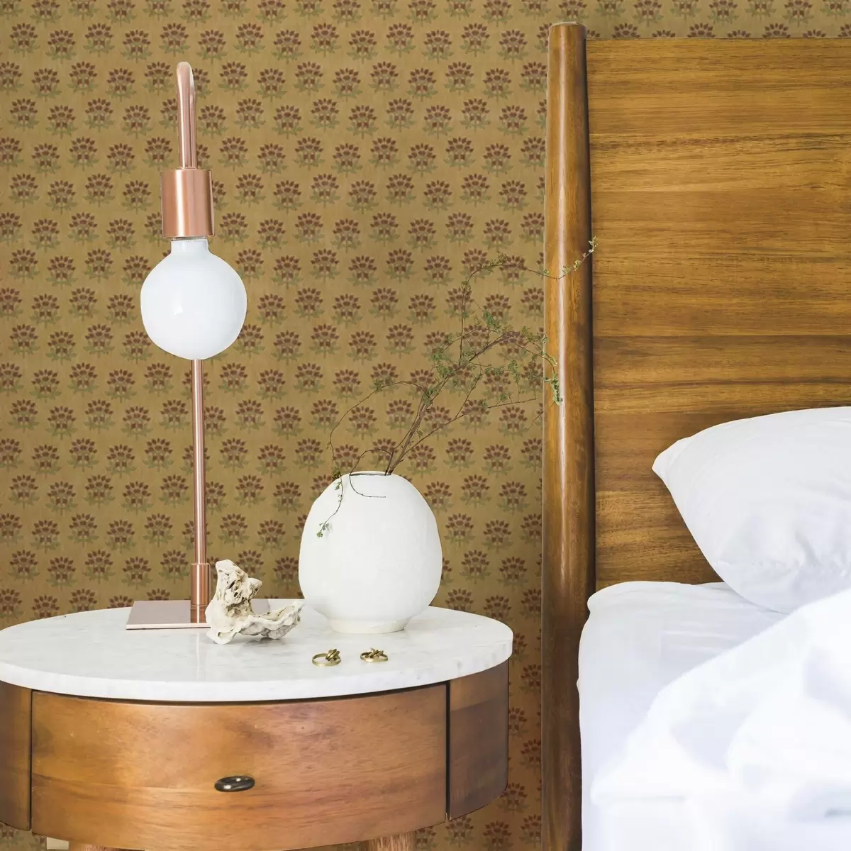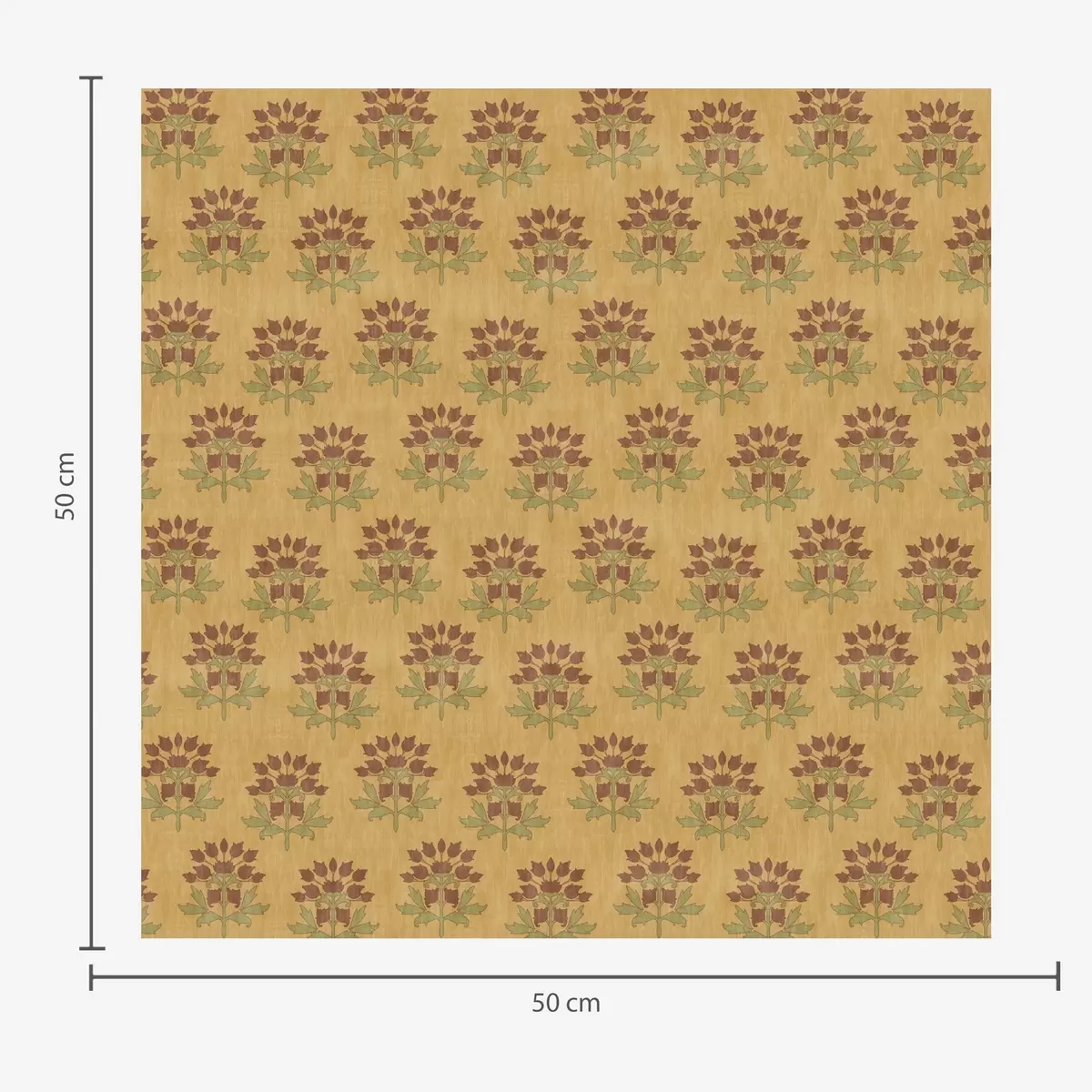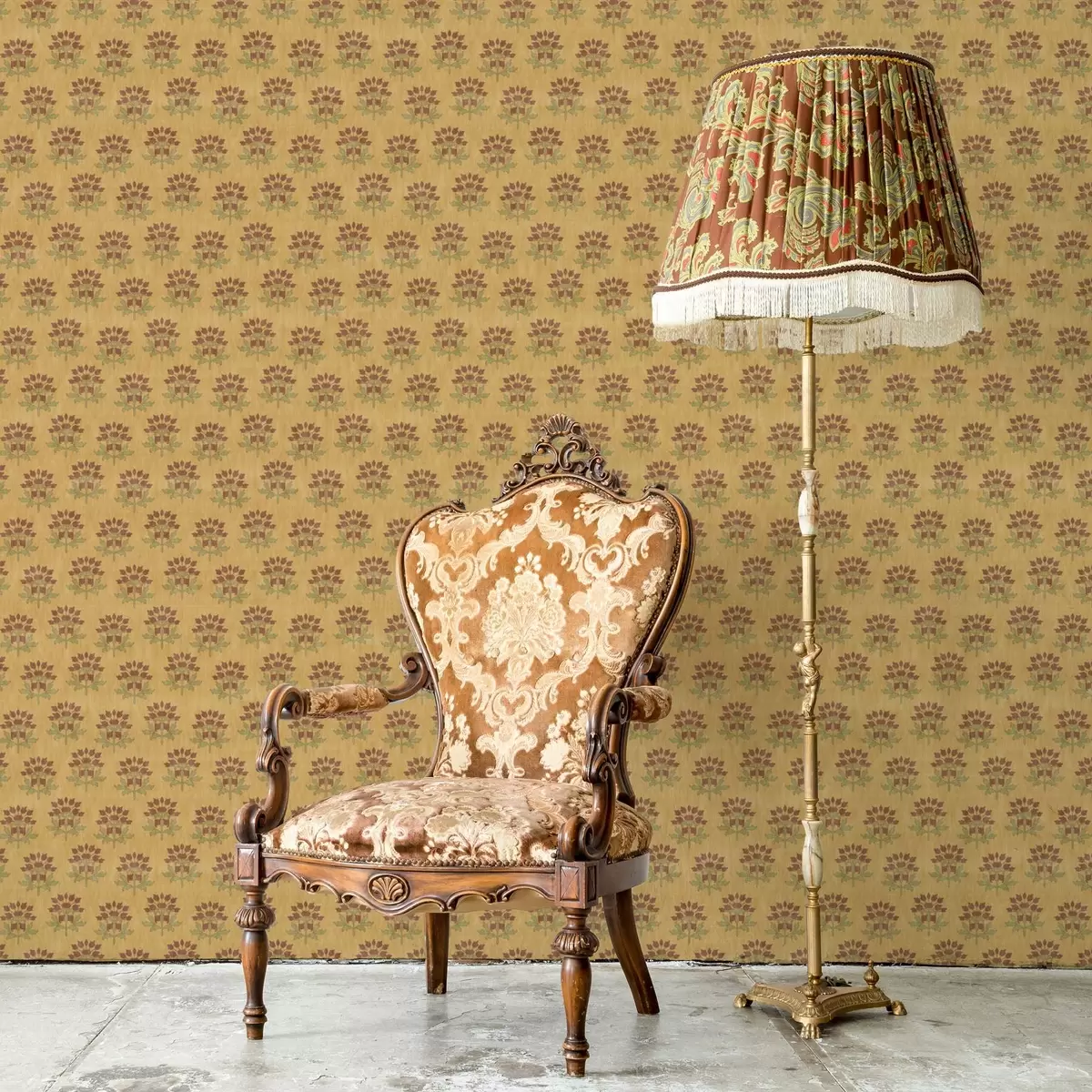 Tapete Retro-Blumenmuster mit Lotusblumen auf gelbem Hintergrund Nr. a00238