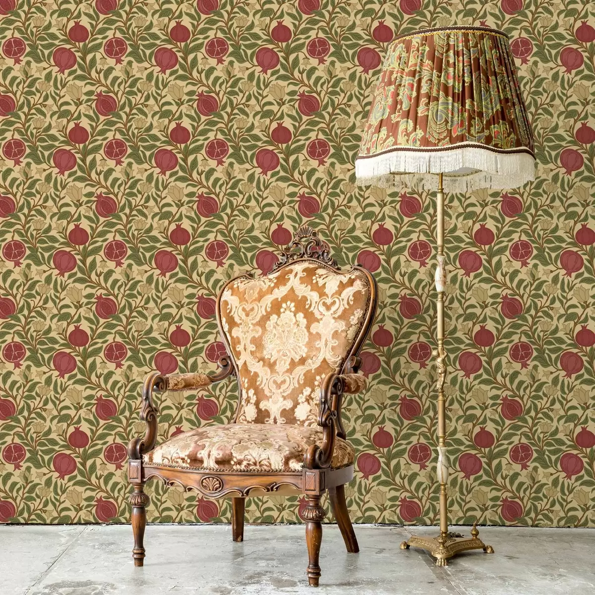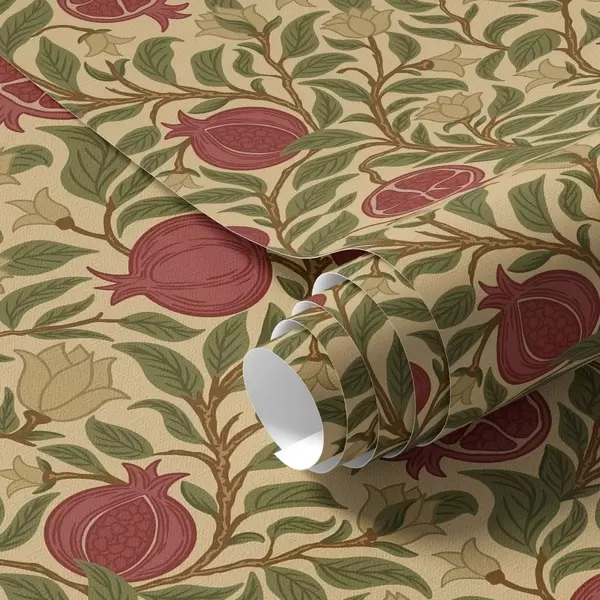 Tapete Granatäpfel und Blumen im Stil von William Morris Nr. a00240
