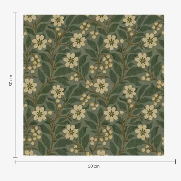 Tapete Gelbe Blumen und Beeren auf einem grünen Hintergrund Nr. a00242