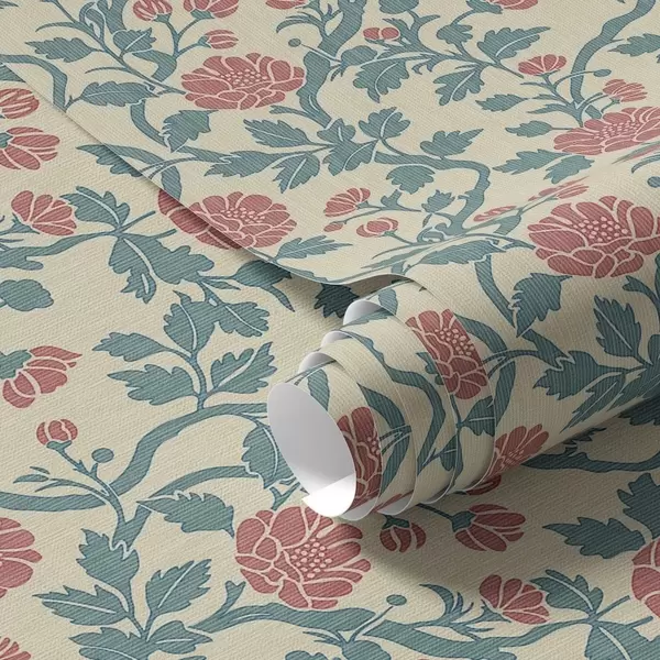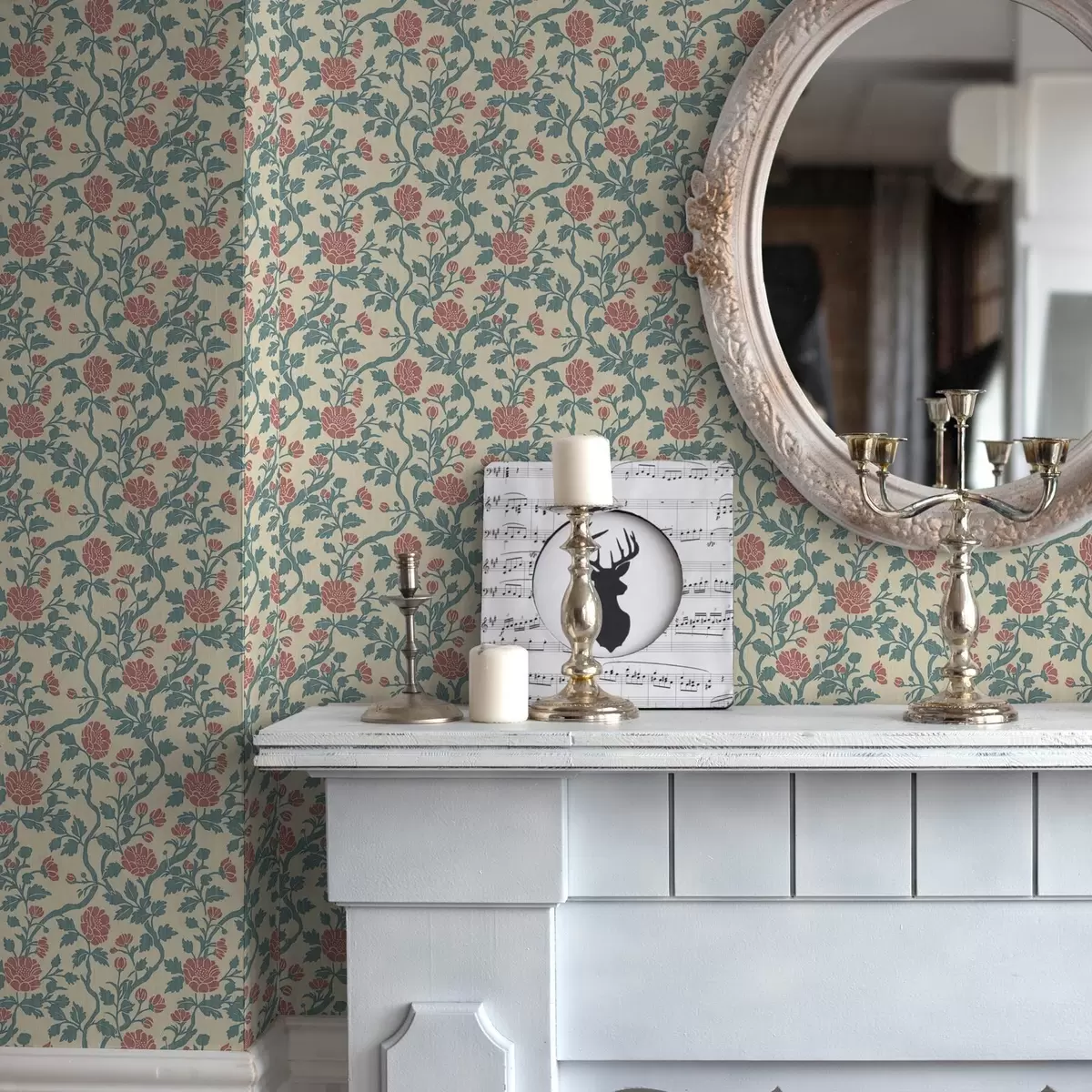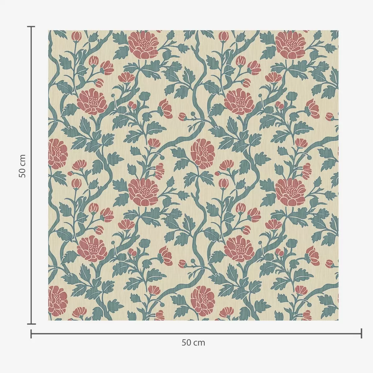 Tapete Retro-Muster mit Blumen in Rot und Grün Nr. a00250