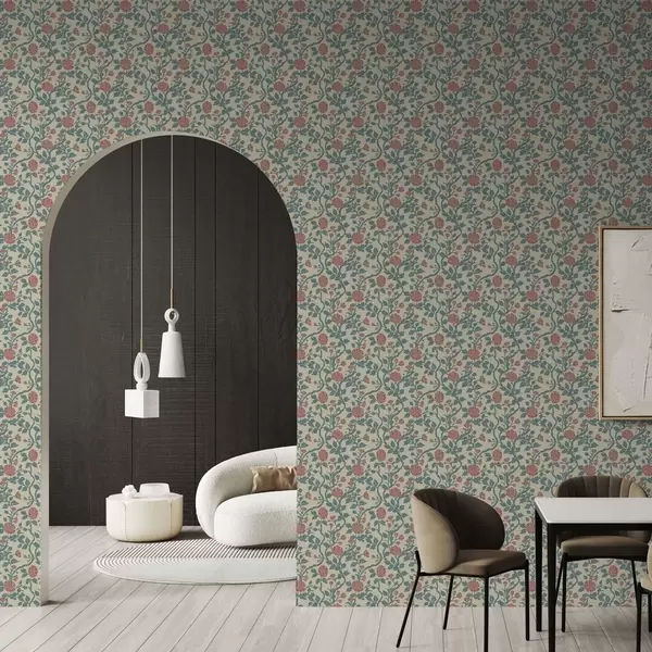 Tapete Retro-Muster mit Blumen in Rot und Grün Nr. a00250