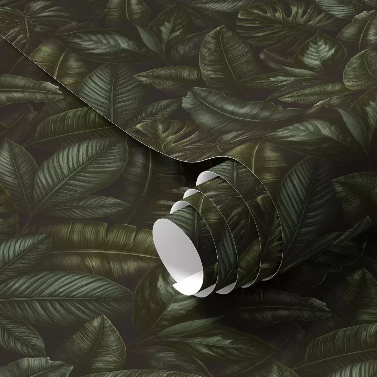 Tapete Dunkle Dschungelblätter mit tiefen Grüntönen Nr. a00251