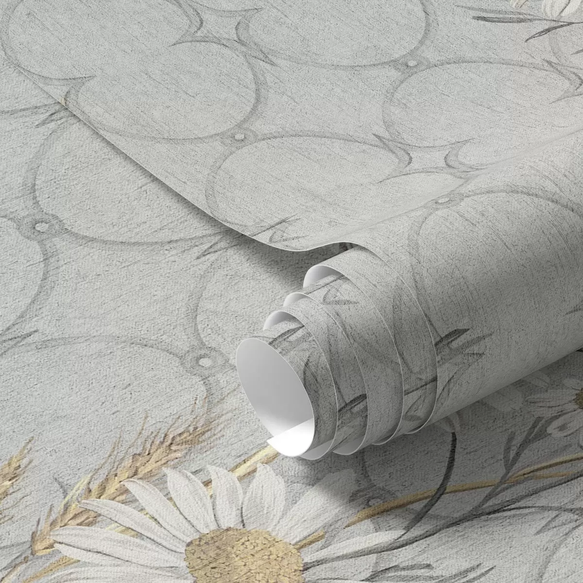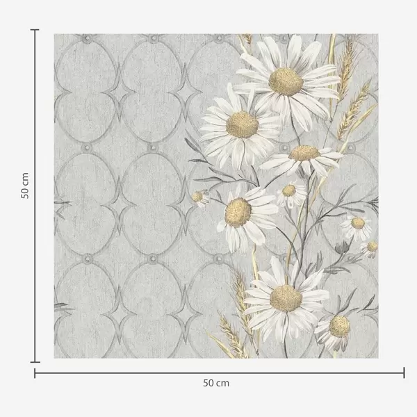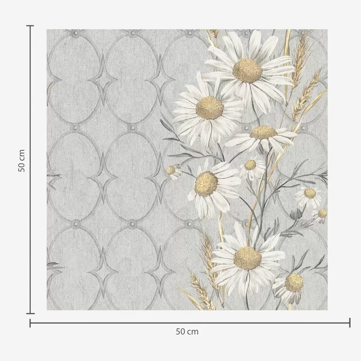 Tapete Gänseblümchen auf grauem Hintergrund mit geometrischem Muster Nr. a00269