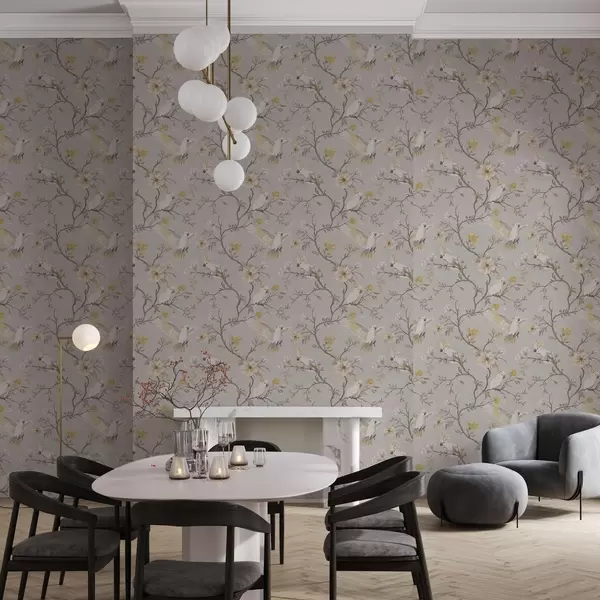 Tapete Papageien und gelbe Blumen auf hellem Hintergrund Nr. a00270