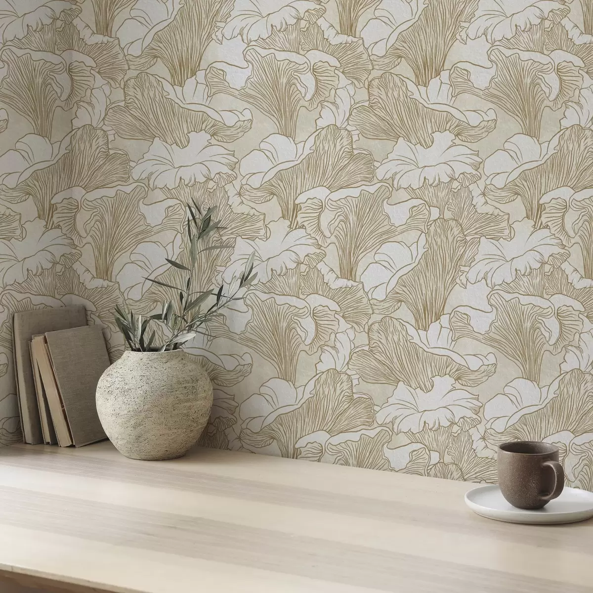 Tapete Pfifferlinge, Strichzeichnung auf cremefarbenem Hintergrund Nr. a00275