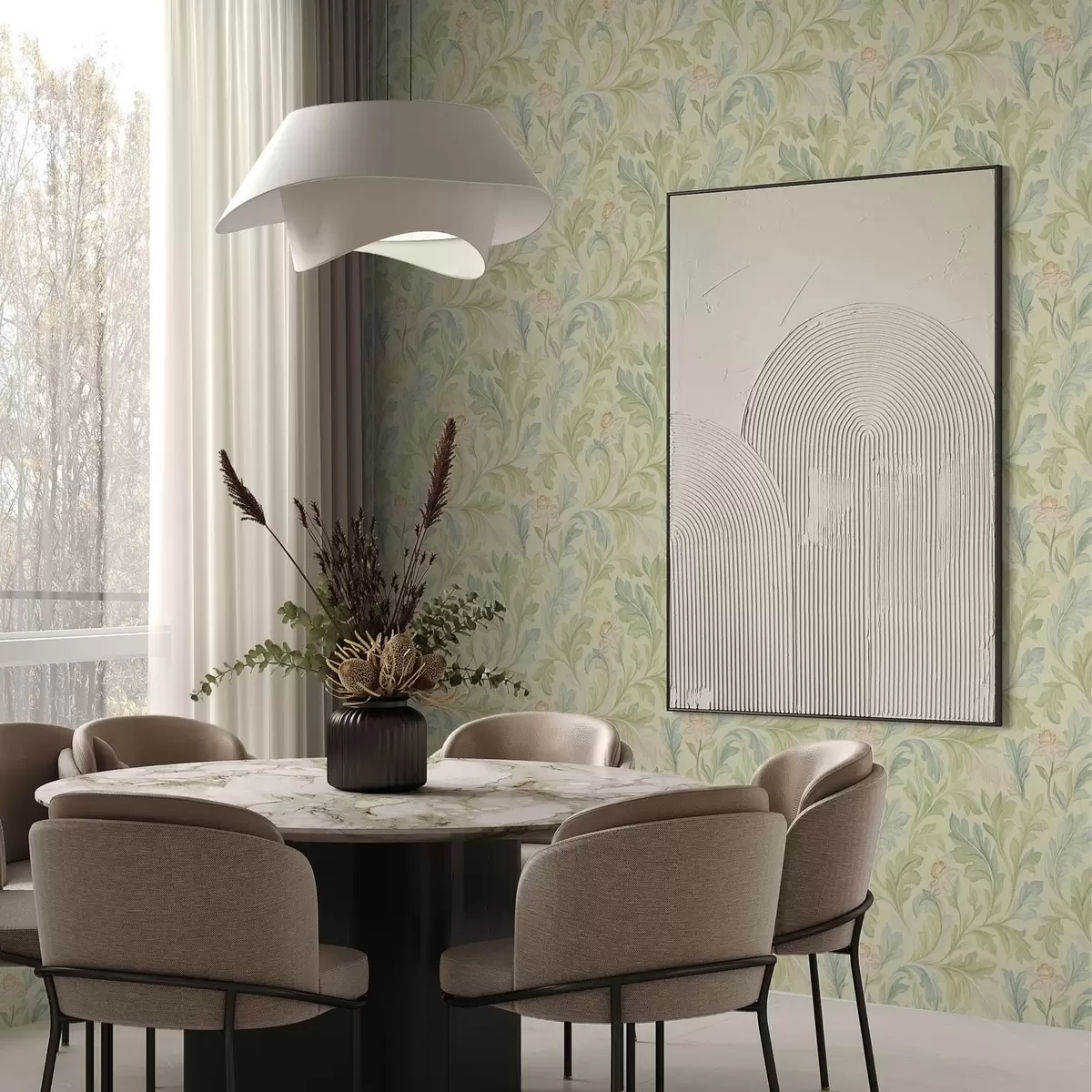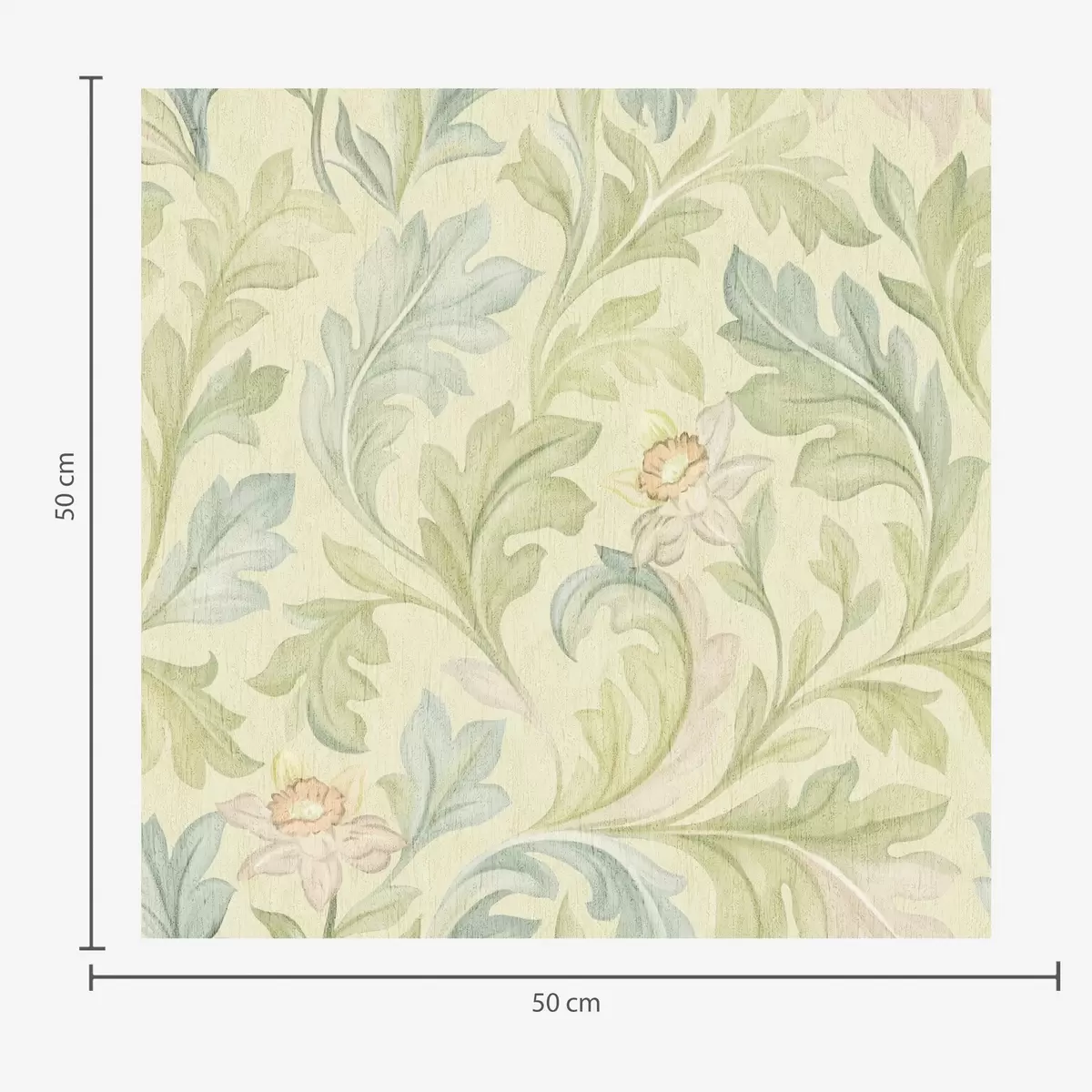 Tapete Vintage Blätter auf gelblichem Hintergrund, weiche Farben Nr. a00277v1