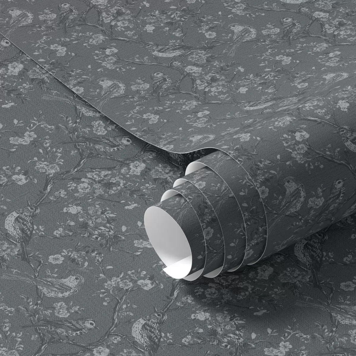 Tapete Dunkles Muster mit Vögeln und Blumen, klassischer Stil Nr. a00281