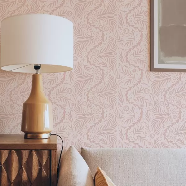 Tapete Blassrosa Blumenelemente auf einem rosa Hintergrund Nr. a00290