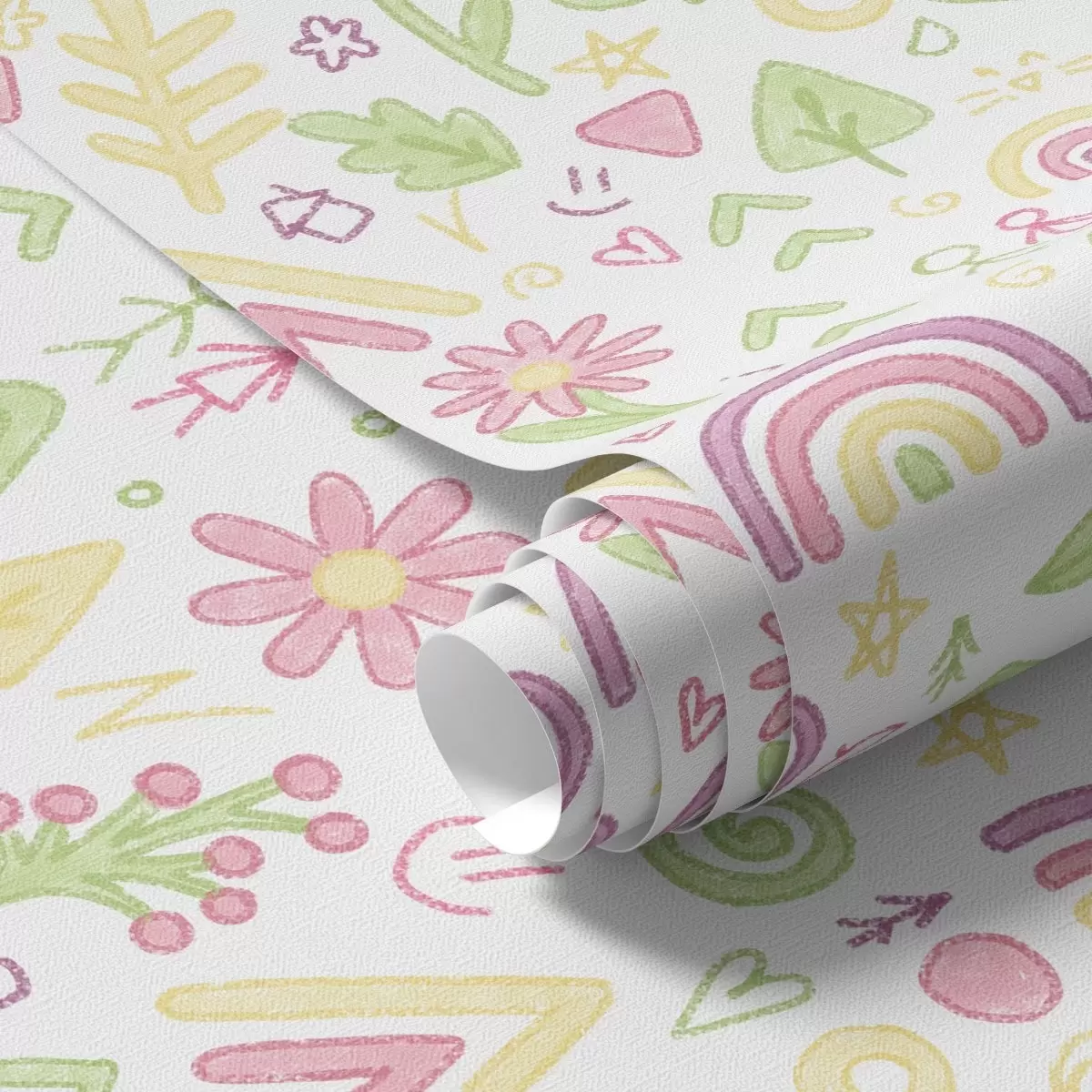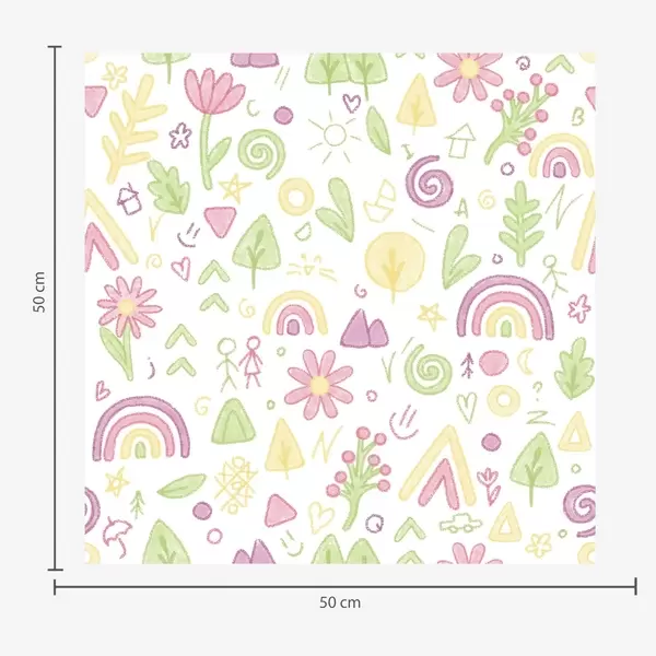 Tapete Kinderzeichnung mit Regenbögen, Blumen und Bäumen Nr. a00296