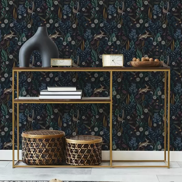 Tapete Dunkler Wald mit Blumen, Hasen und einem Vogel Nr. a00310