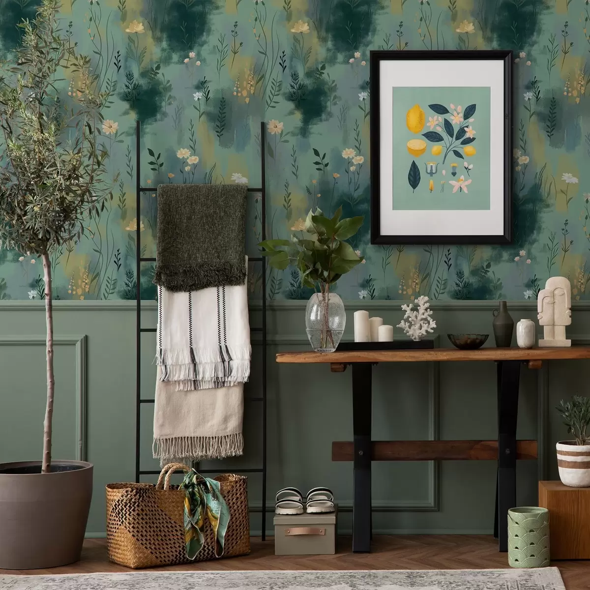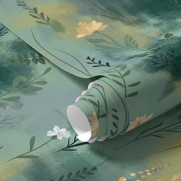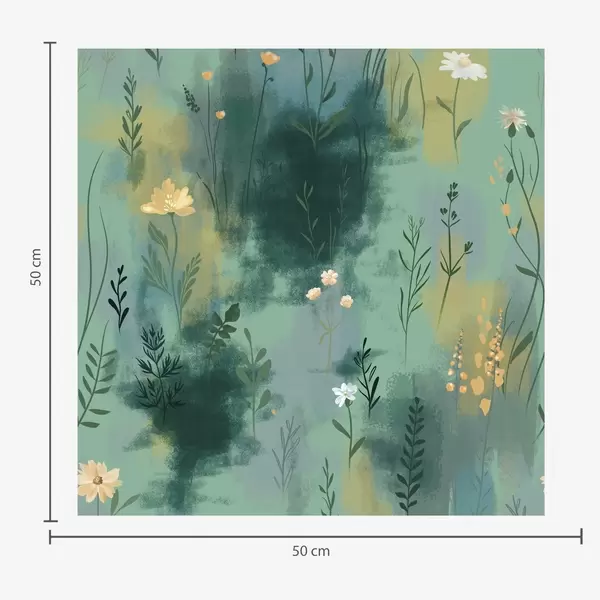 Tapete Aquarell Abstraktion mit Blumen auf grünem Hintergrund Nr. a00312