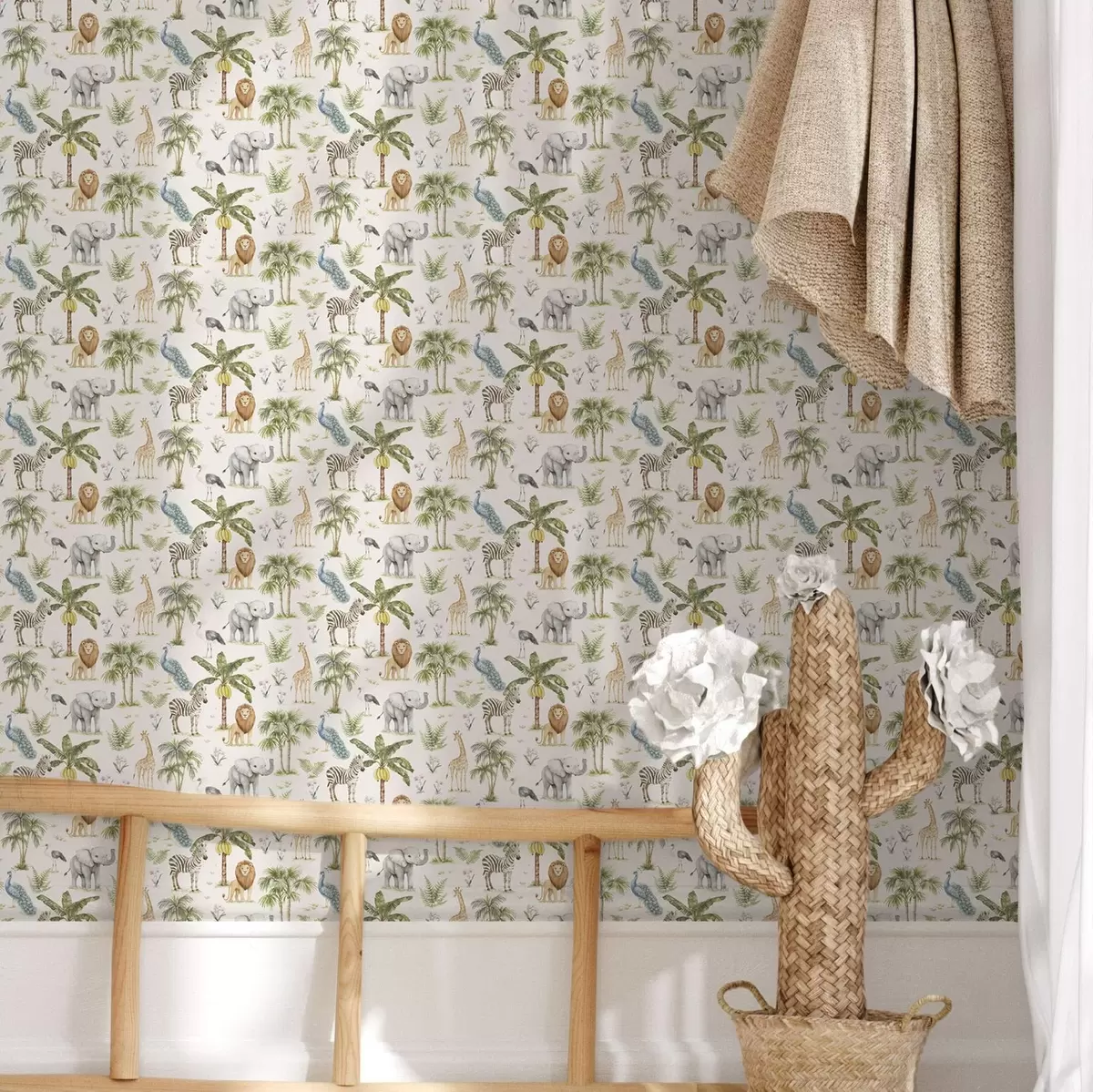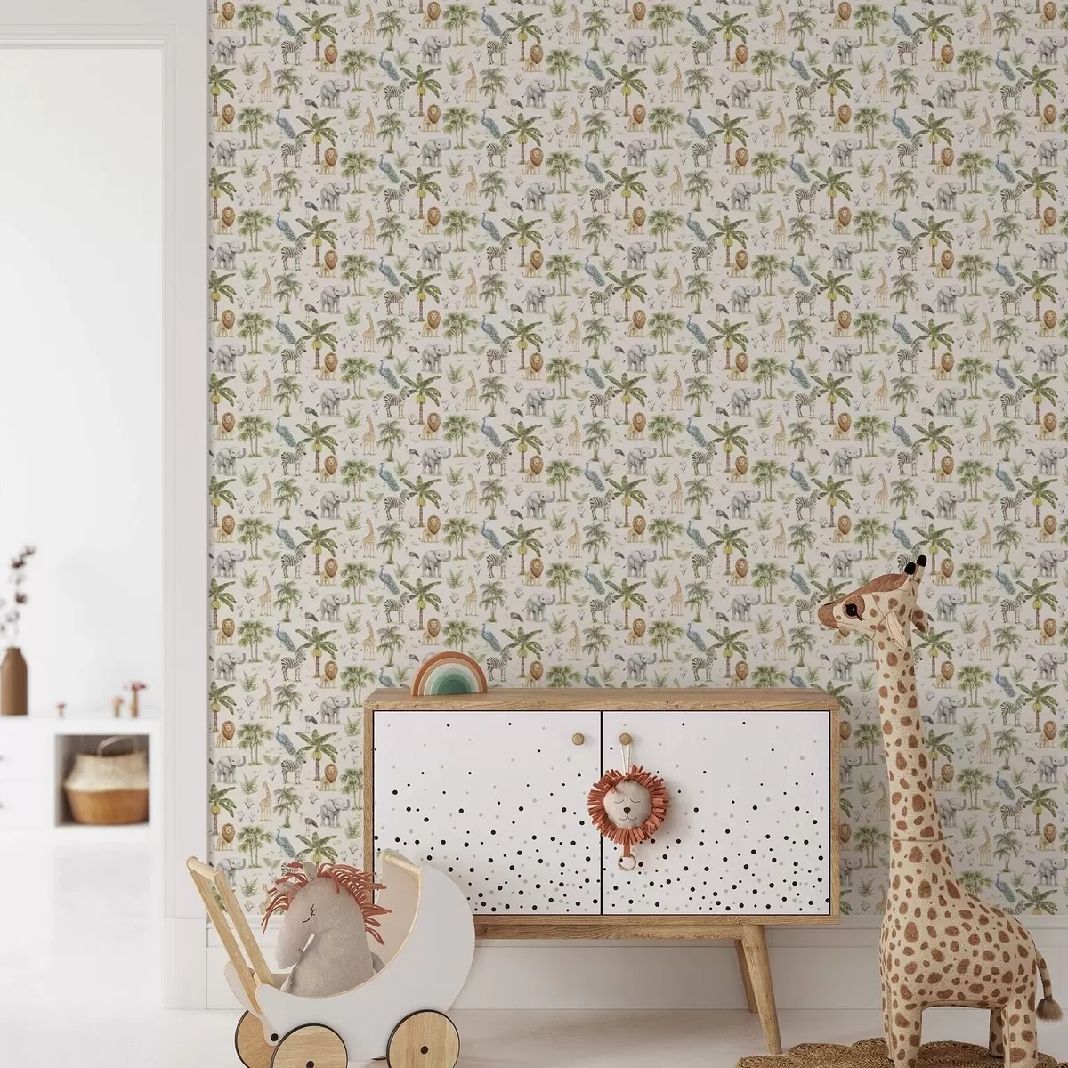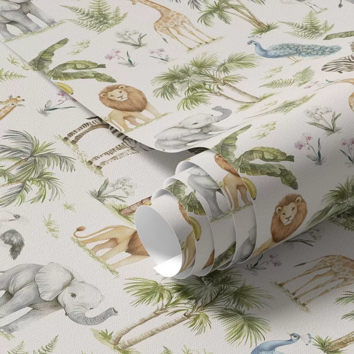 Tapete Afrikanische Tiere zwischen Palmen und exotischen Pflanzen Nr. a00321