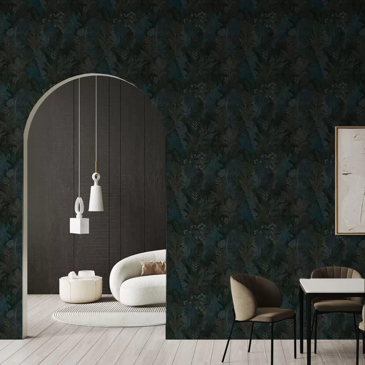 Tapete Dunkelgrünes tropisches Laub mit blauen Akzenten Nr. a00327