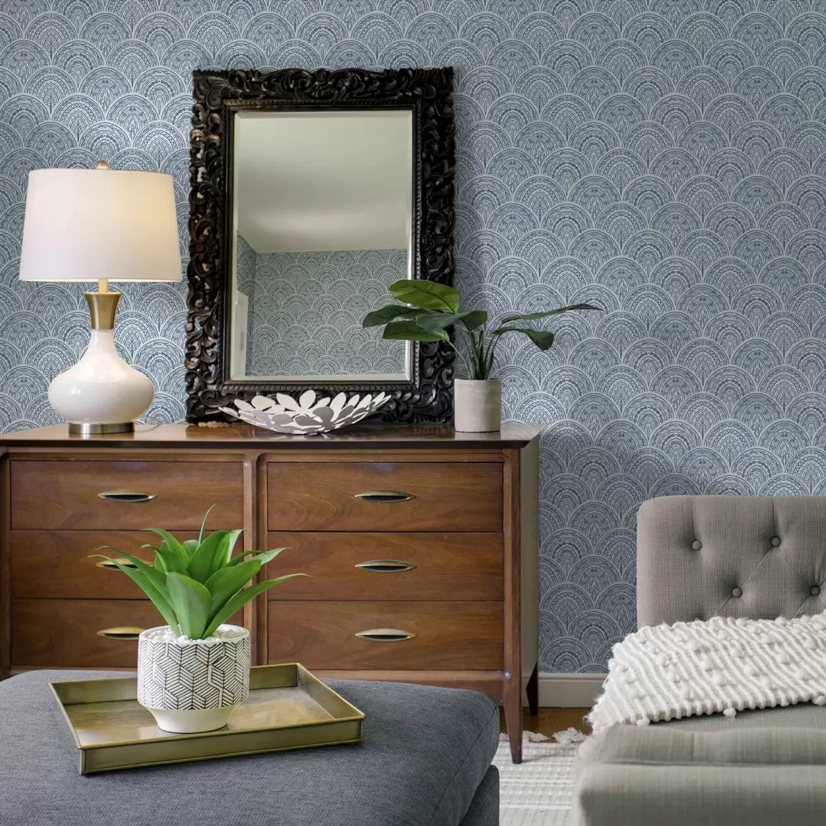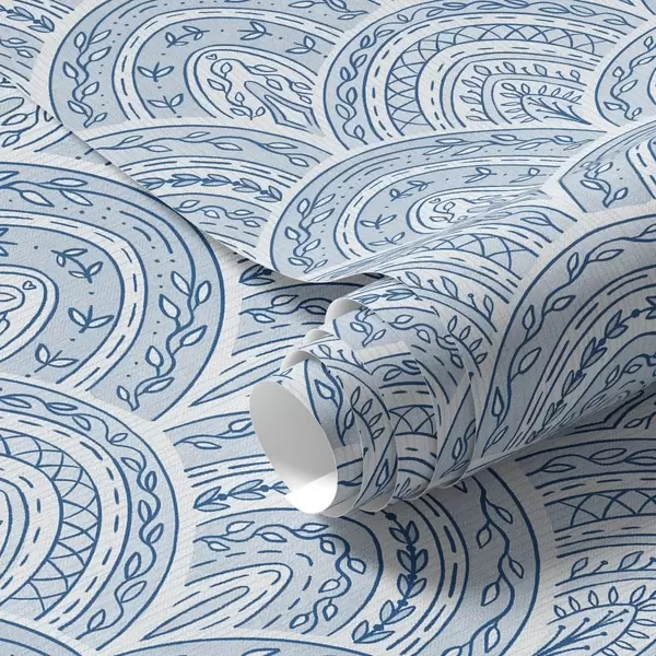 Tapete Blaues Ornament mit Bögen und Mustern Nr. a00332