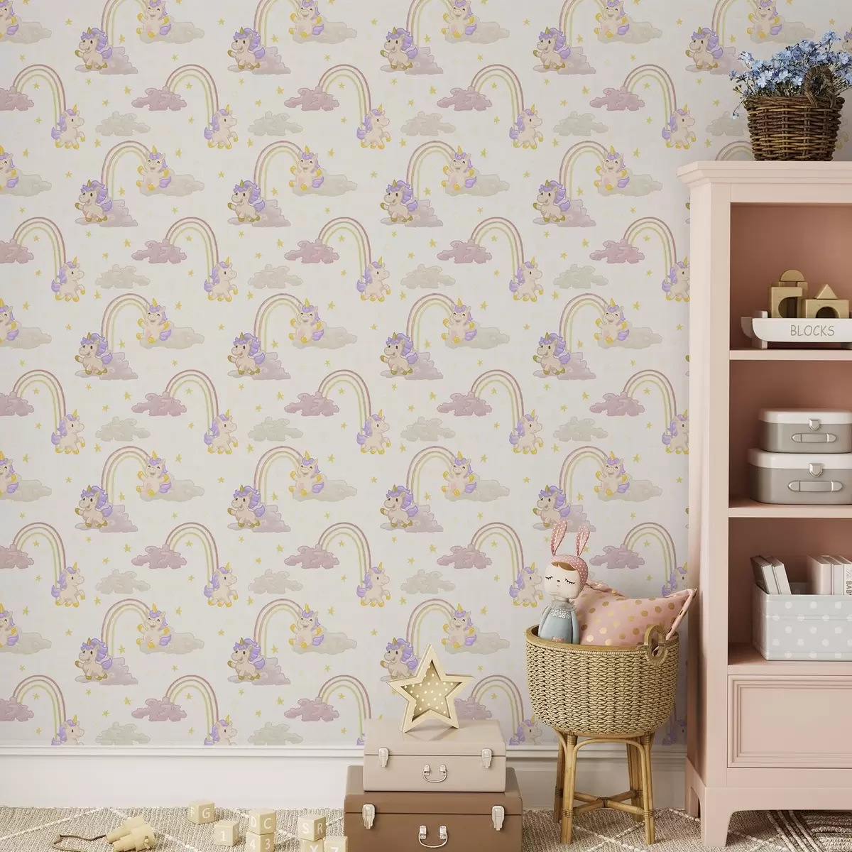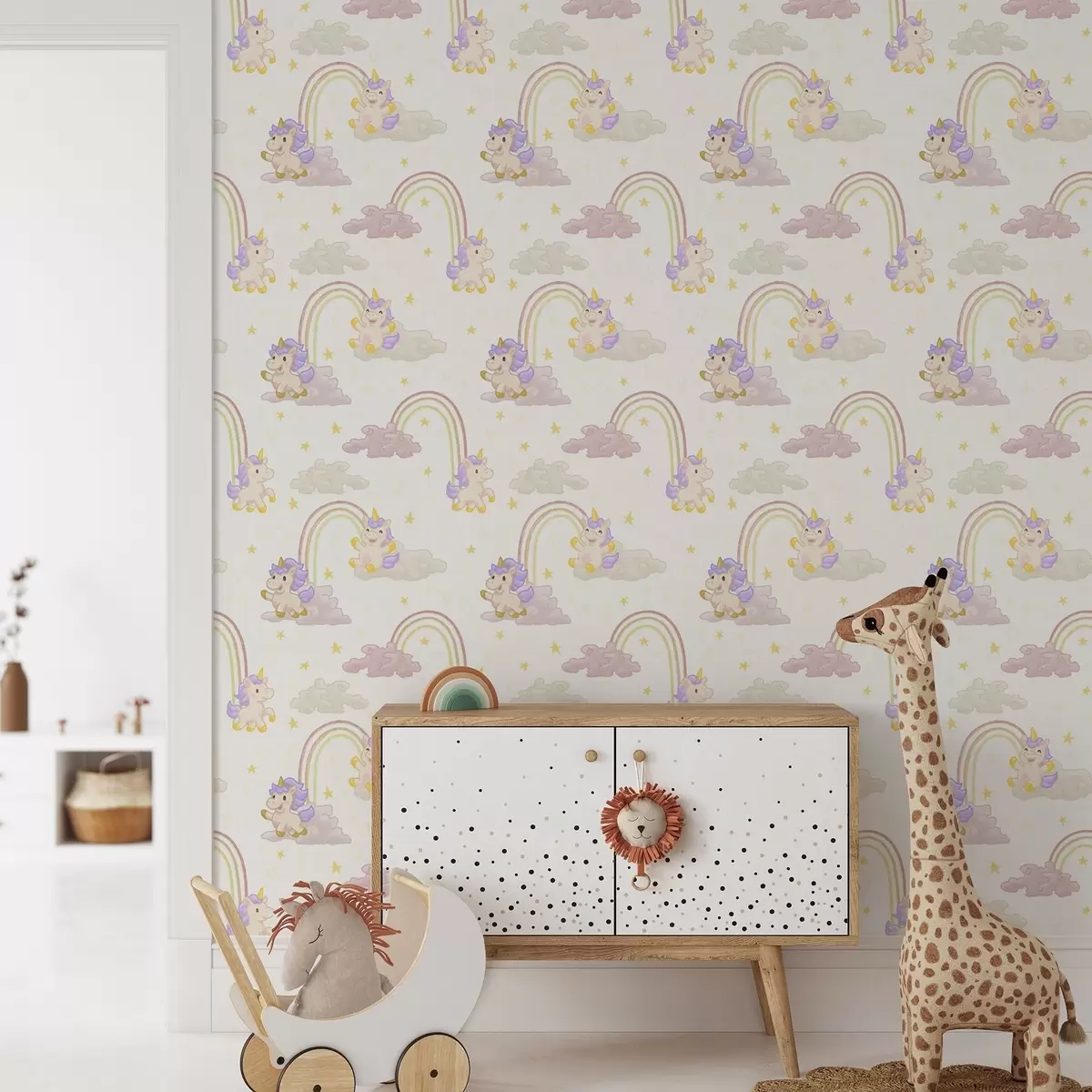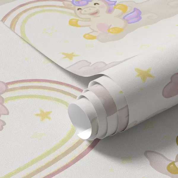 Tapete Niedliches Einhorn mit Regenbögen und Sternen Nr. a00339