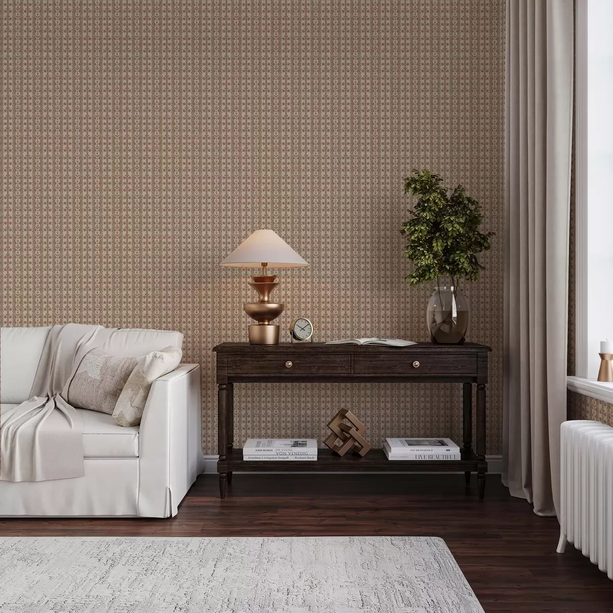 Tapete Gestreiftes Ornament mit roten Blumen Nr. a00341