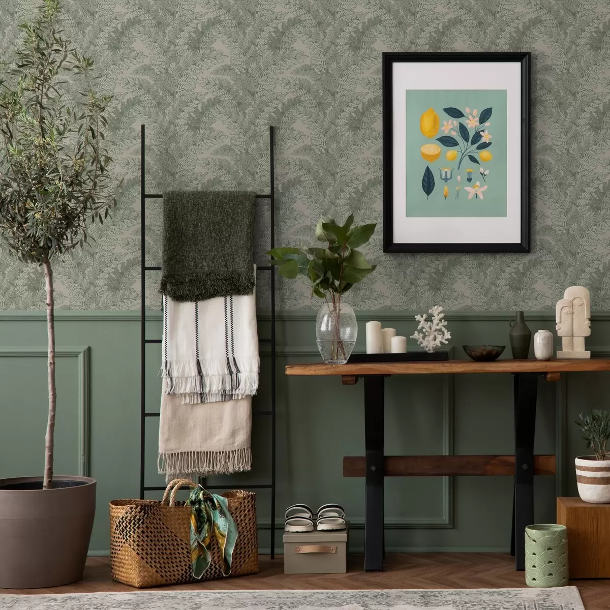 Tapete Grünes Muster mit Farnblättern Nr. a00345