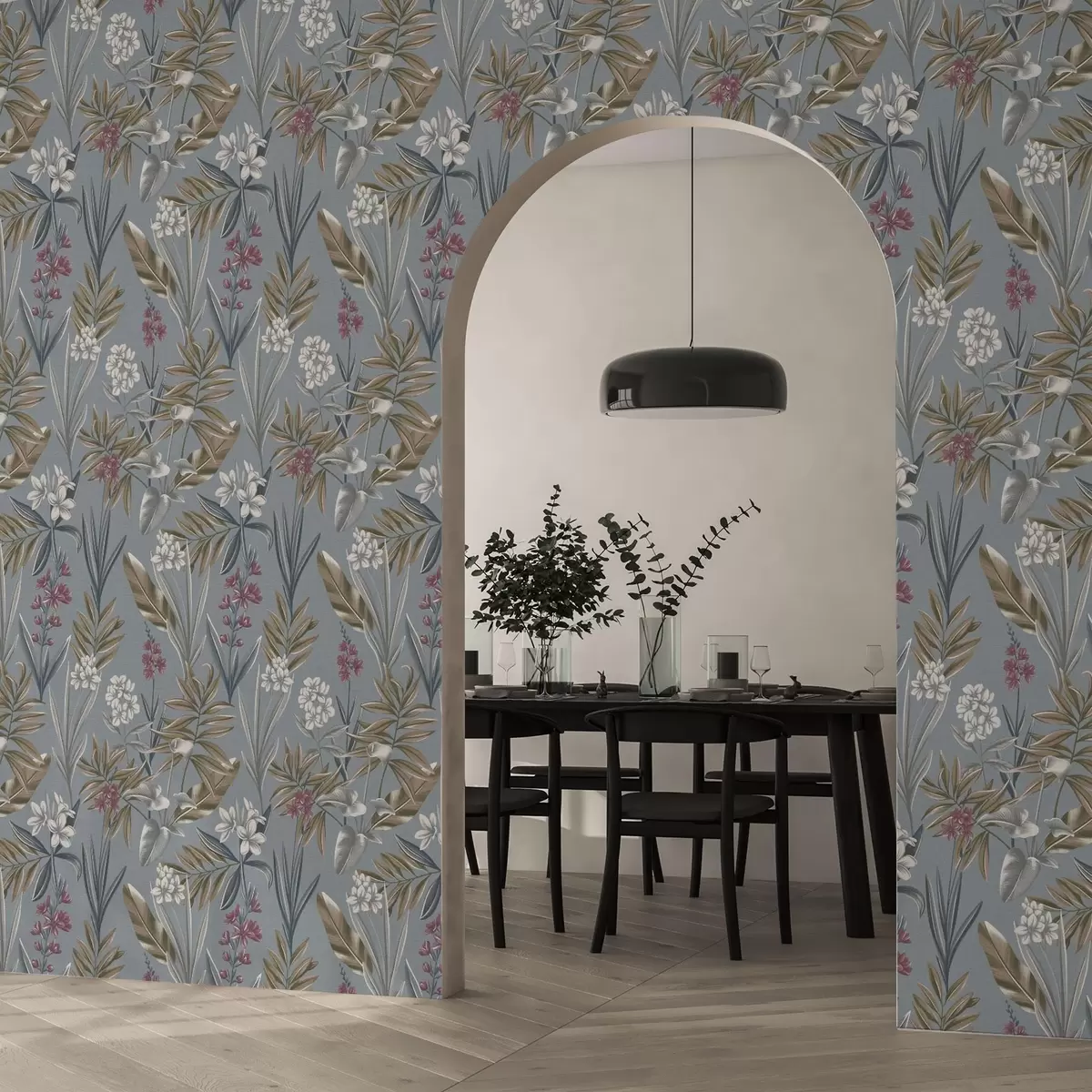 Tapete Florale Zweige auf blau-grauem Hintergrund Nr. a00350