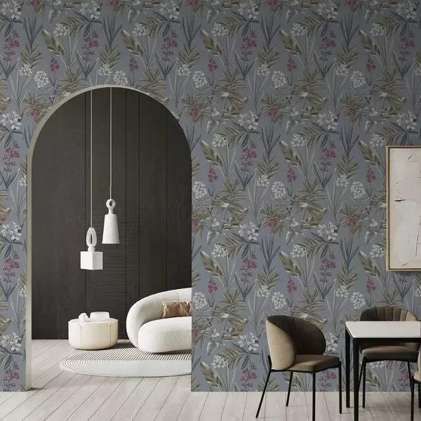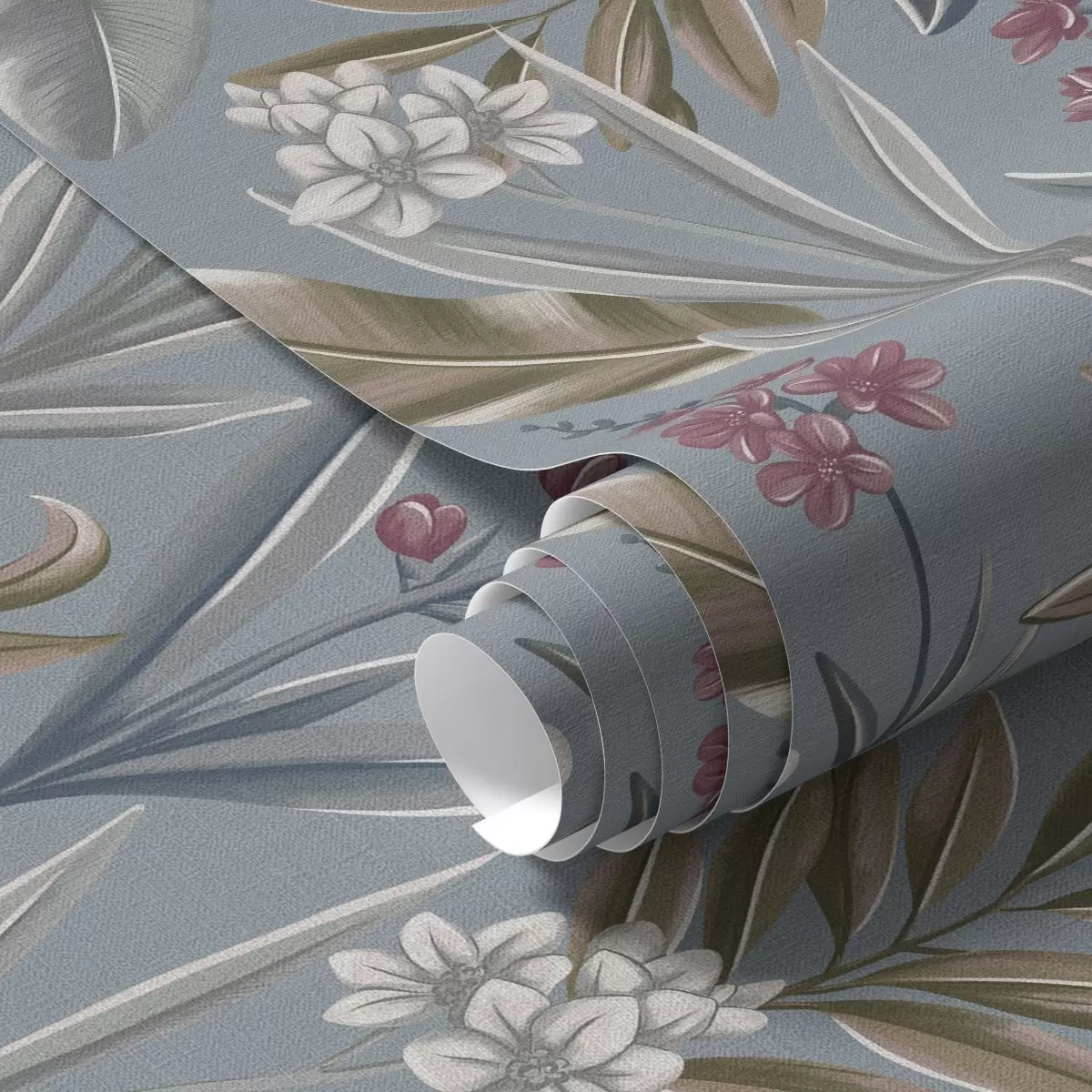 Tapete Florale Zweige auf blau-grauem Hintergrund Nr. a00350