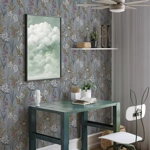 Tapete Florale Zweige auf blau-grauem Hintergrund Nr. a00350