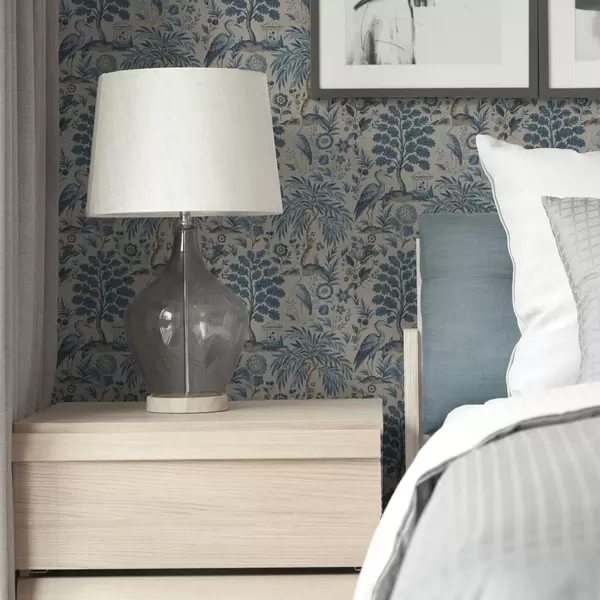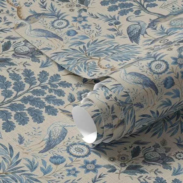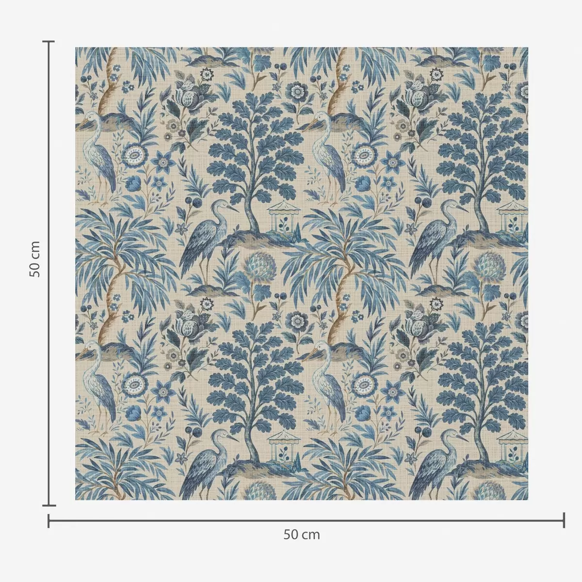 Tapete Toile de Jouy-Stil mit blauen Vögeln und tropischen Bäumen Nr. a00382